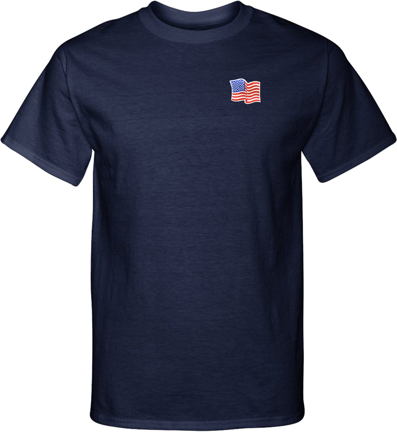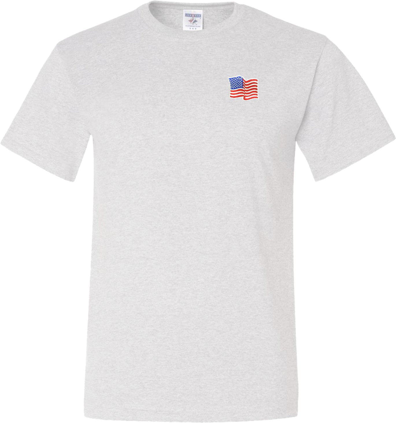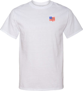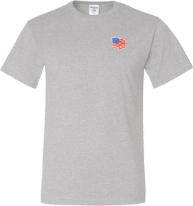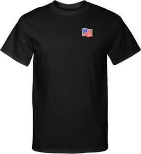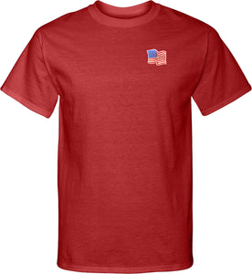 - A mens tall t-shirt featuring the American Flag as a pocket print