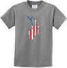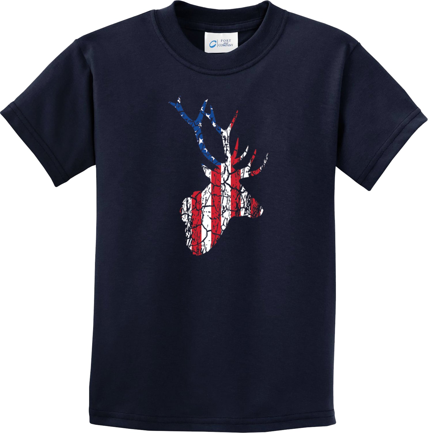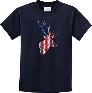 A patriotic deer youth t-shirt with a traditional silhouette to fit both boys and girls. Made from comfortable 100% cotton. The t-shirt features the American Flag in a deer silhouette. This kids shirt makes the perfect gift for all who are proud to be an American. Size Small (6-8), Medium (10-12), Large (14-16), XL (18-20)