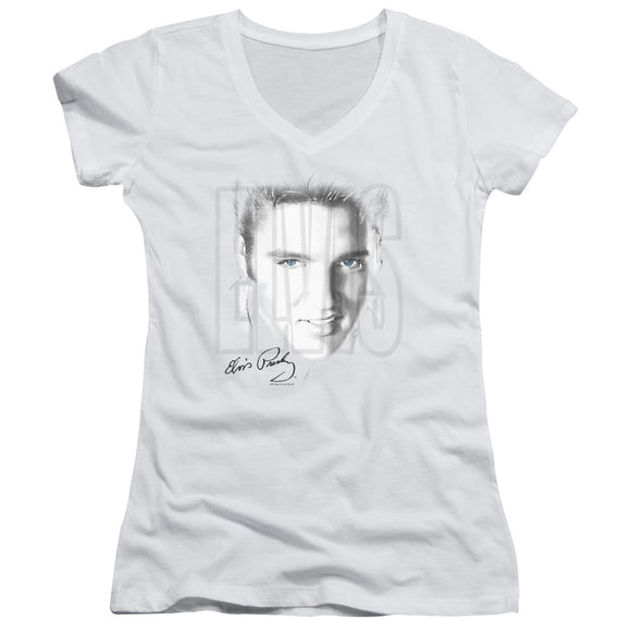 Elvis Presley Juniors V-Neck T-Shirt Blue Eyes White Tee