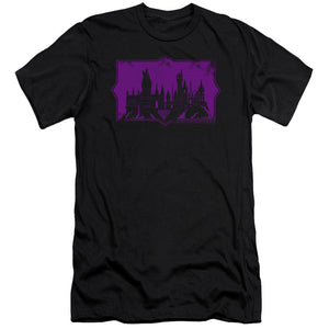 - A Fantastic Beasts: The Crimes of Grindelwald Slim Fit T-shirt featuring a silhouette of Hogwarts School of Witchcraft and Wizardry