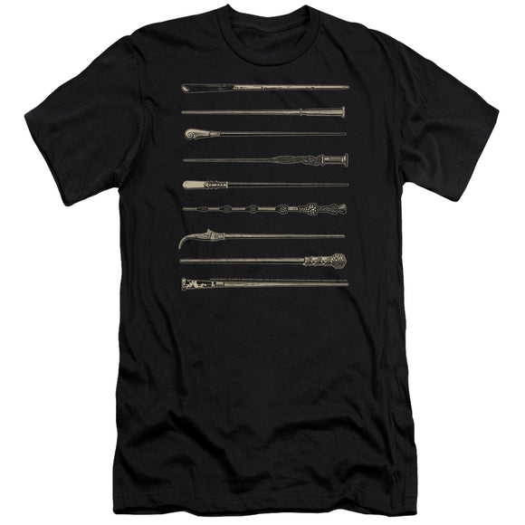 - A Fantastic Beasts: The Crimes of Grindelwald Slim Fit T-shirt featuring a collection of wands