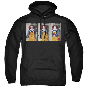 • An IT Movie Hoodie featuring three photos of Pennywise the dancing clown