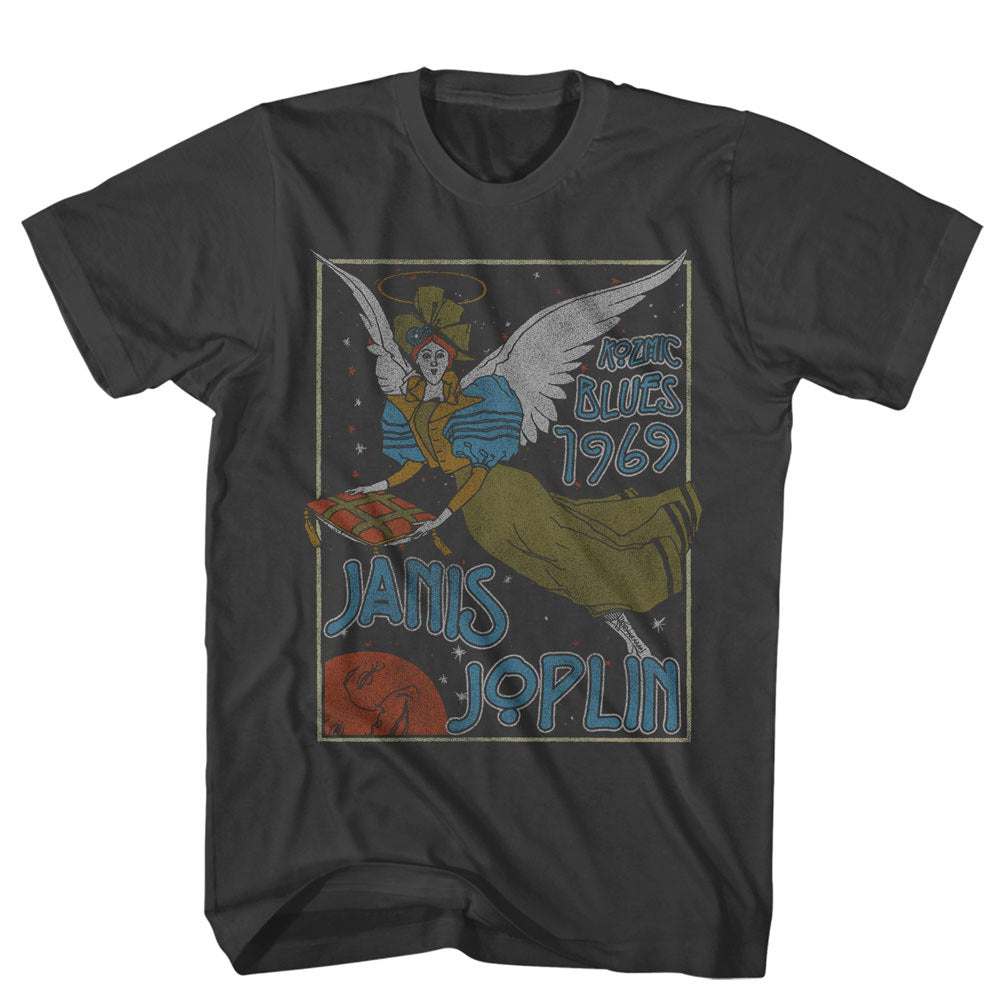 An officially licensed Janis Joplin shirt that fits both men and women with its traditional silhouette. Made from comfortable 100% ring spun cotton. The t-shirt features Janis Joplin Kozmic Blues 1969. This t-shirt makes the perfect gift for fans of the iconic singer and songwriter.