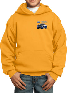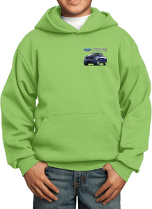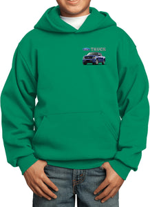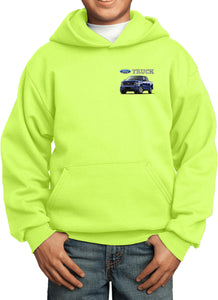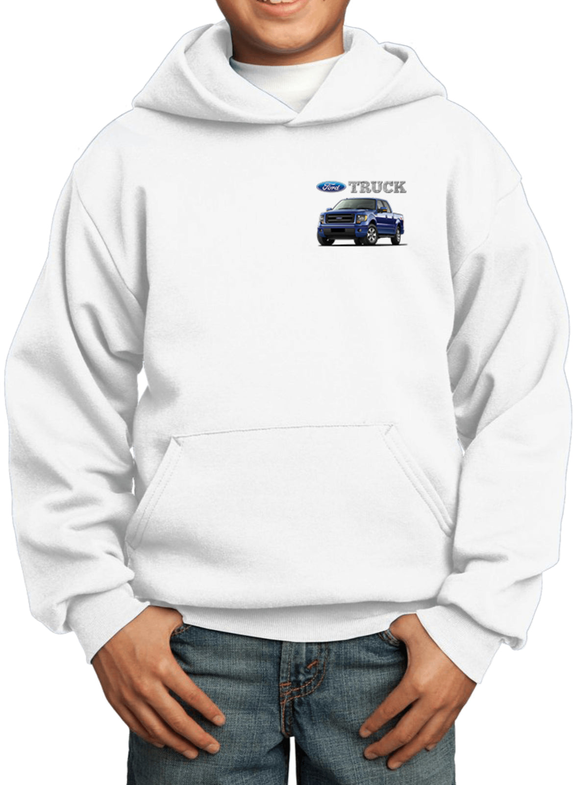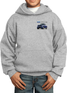- A youth hoodie featuring a blue Ford F-150 as a pocket print