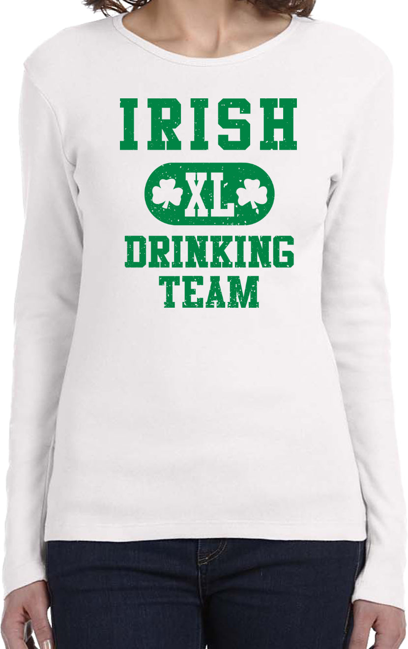 - A ladies St. Patrick's Day 3/4 sleeve shirt featuring a vintage Irish Drinking Team design