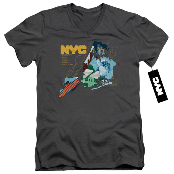 NYC Slim Fit V-Neck T-Shirt Five Boroughs Charcoal Tee