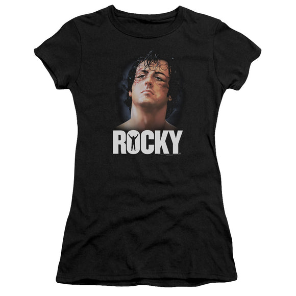 - A Rocky Premium Juniors T-shirt featuring a close up image of the Italian Stallion after a fight
