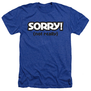 • A Sorry Heathered T-shirt that reads Sorry! Not Really