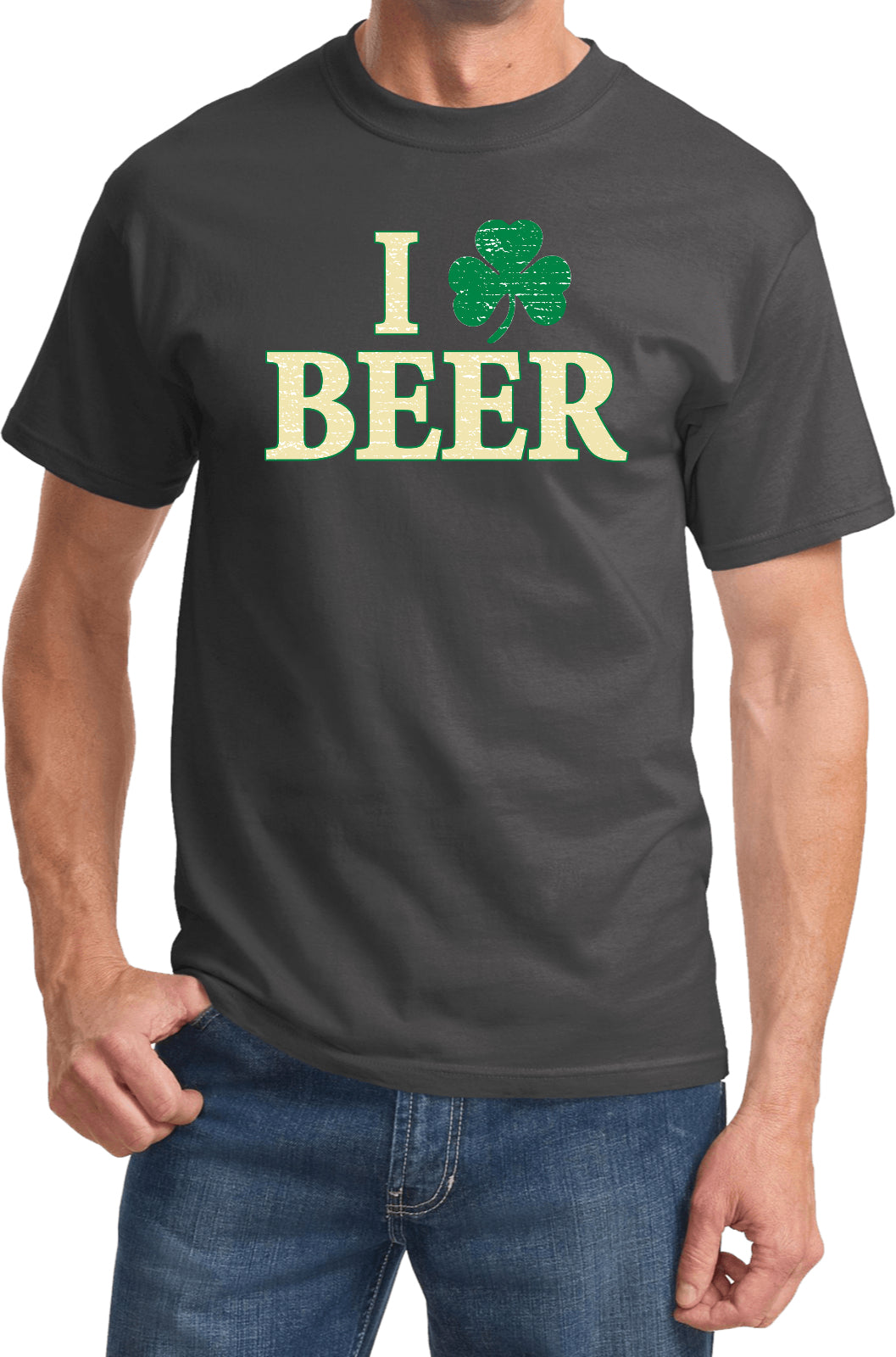 - A St. Patrick's Day t-shirt featuring I Love Beer with a shamrock replacing the heart
