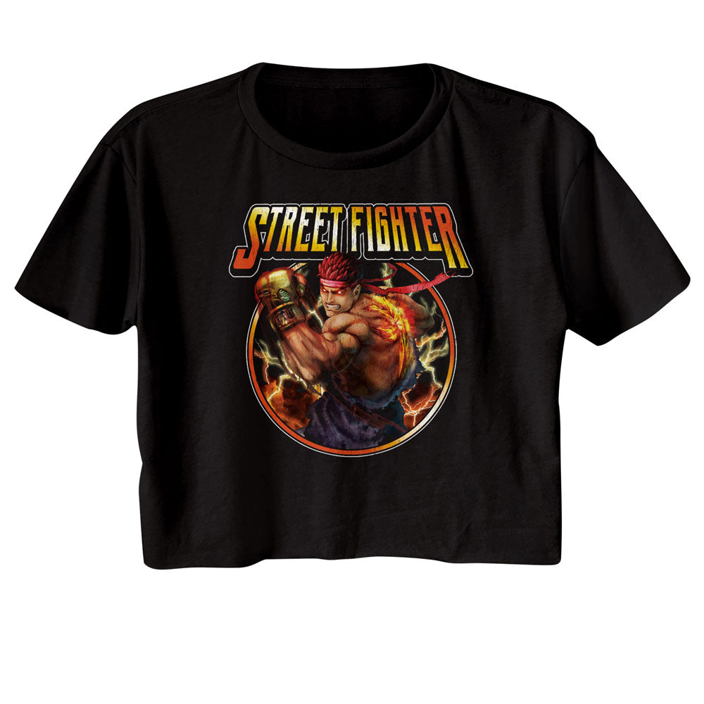 Street Fighter Ryu Lightning Black Ladies Black Crop Shirt