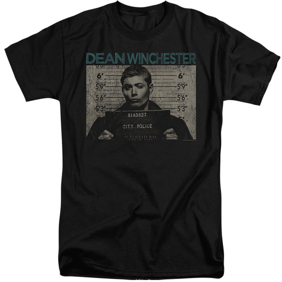 Supernatural Tall T-Shirt Dean Winchester Mug Shot Black Tee