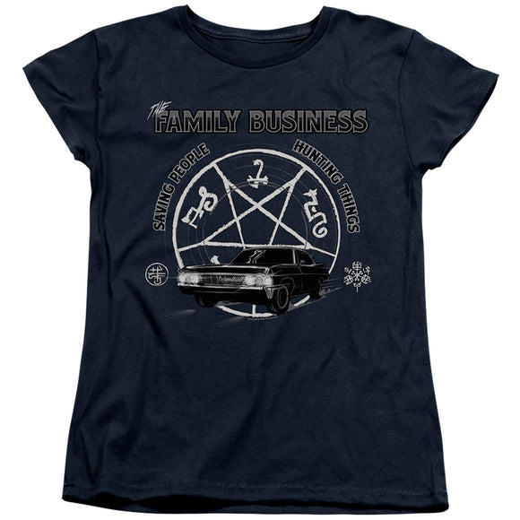 Supernatural Womens T-Shirt Family Business Quote Navy Tee