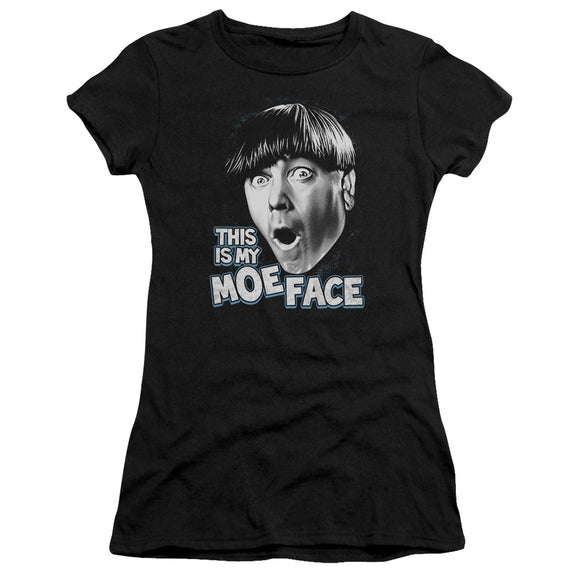 - A Three Stooges Premium Juniors T-shirt featuring This is my Moe Face