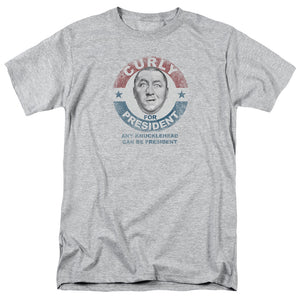 - A Three Stooges T-shirt featuring Curly for President, Any Knucklehead Can Be President