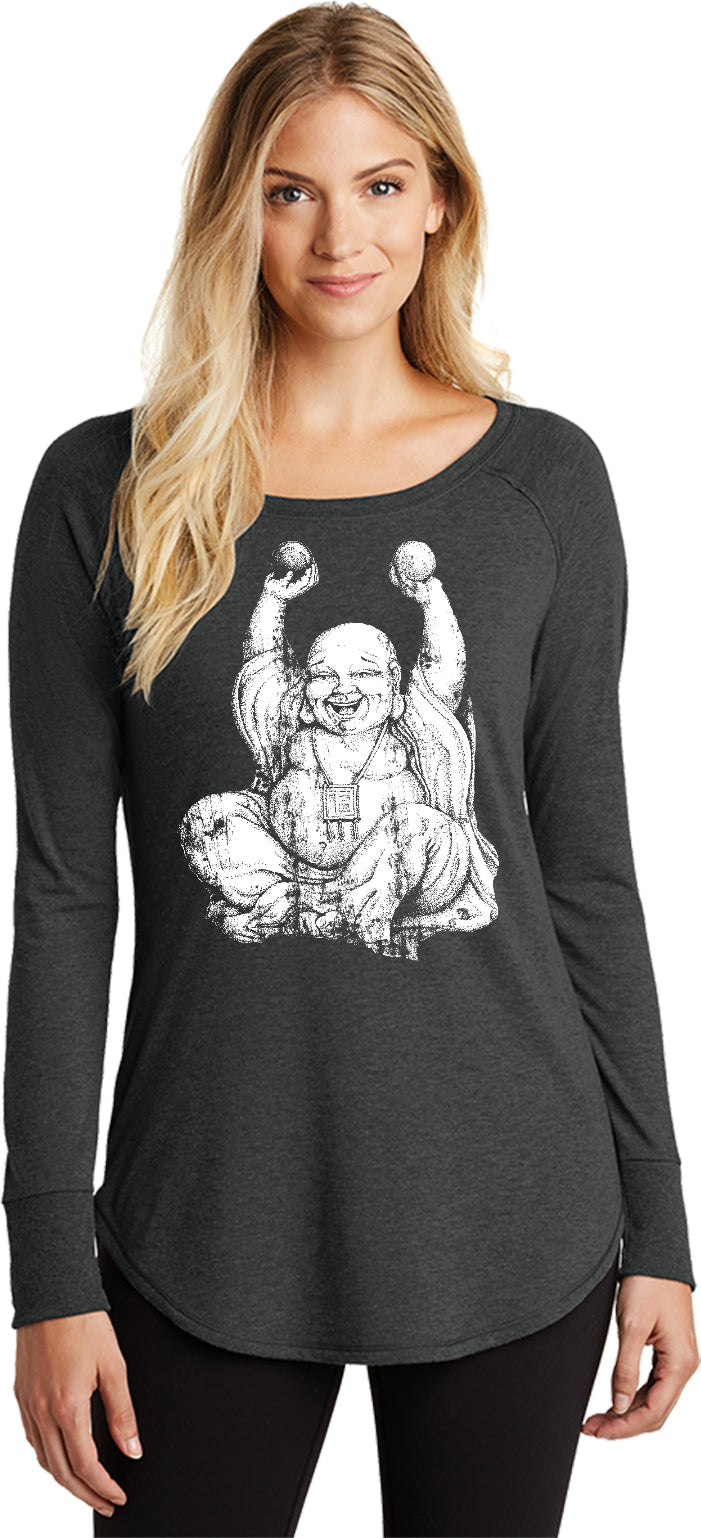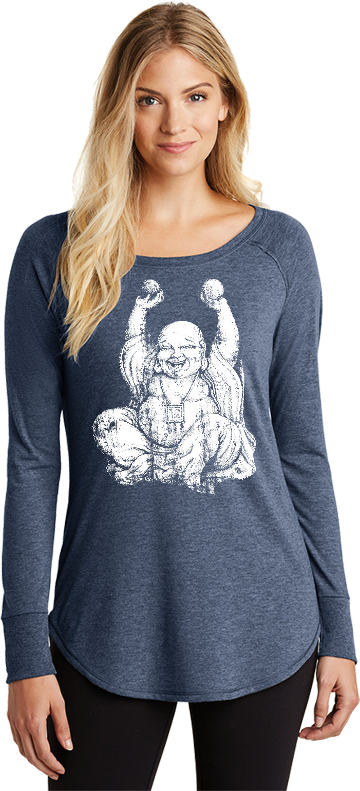 Womens Yoga Shirt Laughing Buddha Long Sleeve Tunic