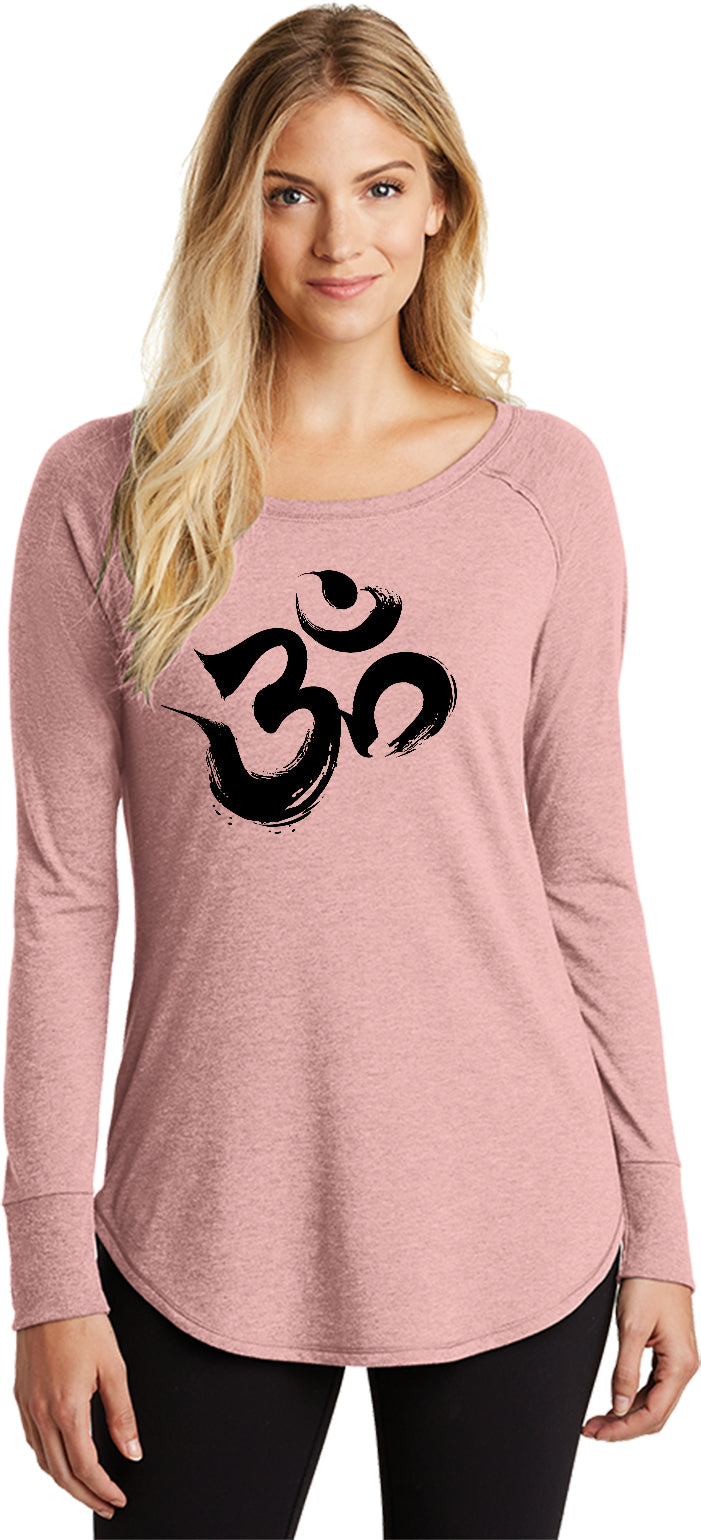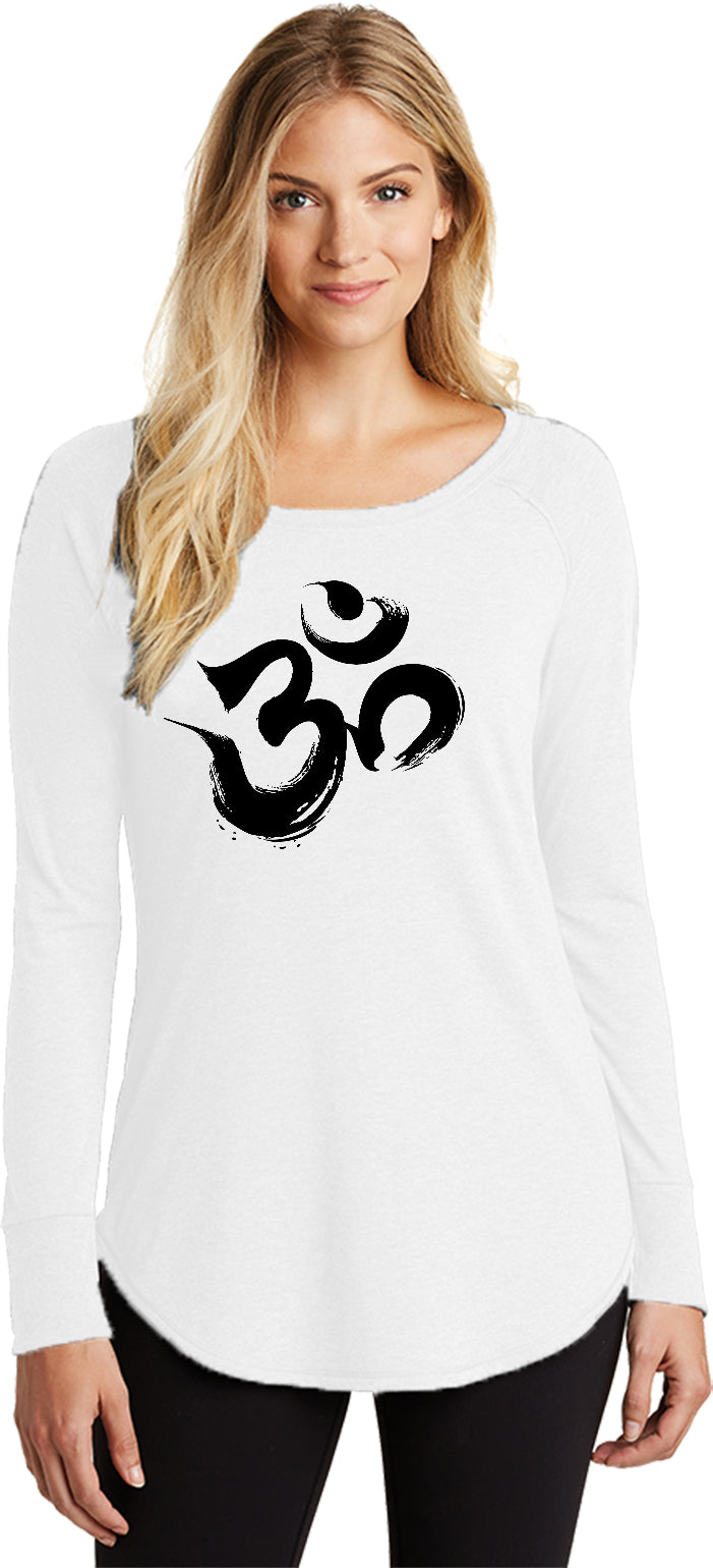 Womens Yoga T-shirt Black Brushstroke AUM Long Sleeve Tunic