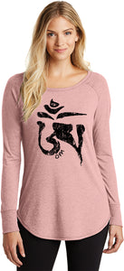 - A ladies long sleeve tunic t-shirt featuring a vintage Tibetan OM Script