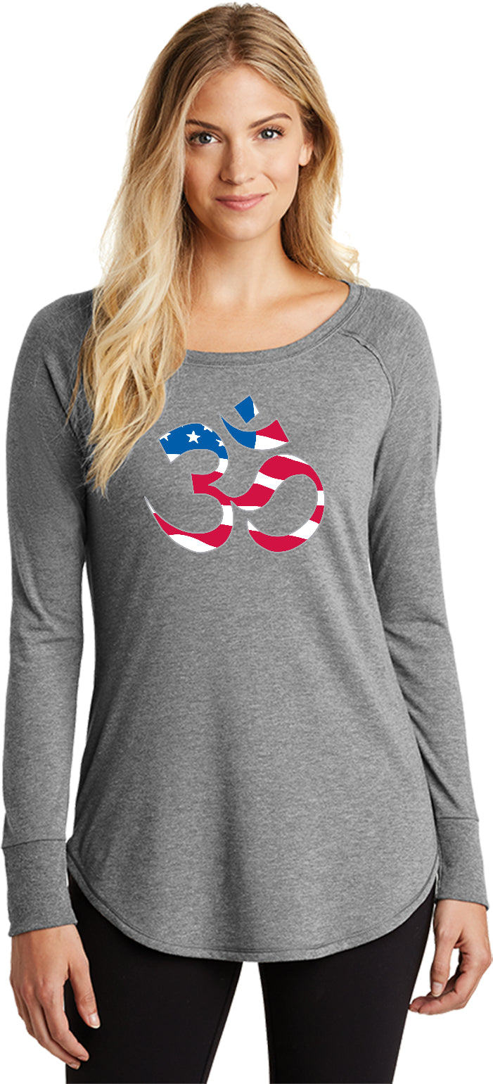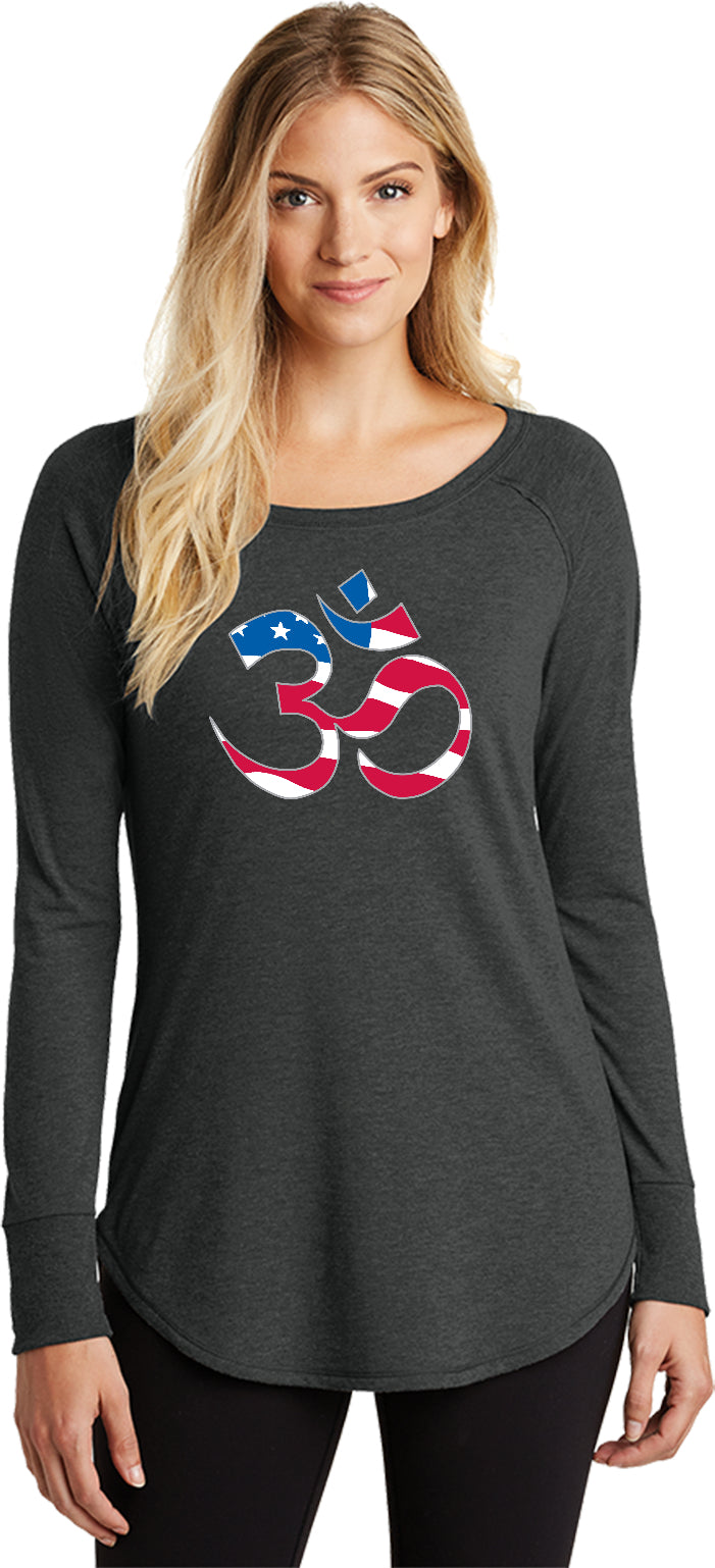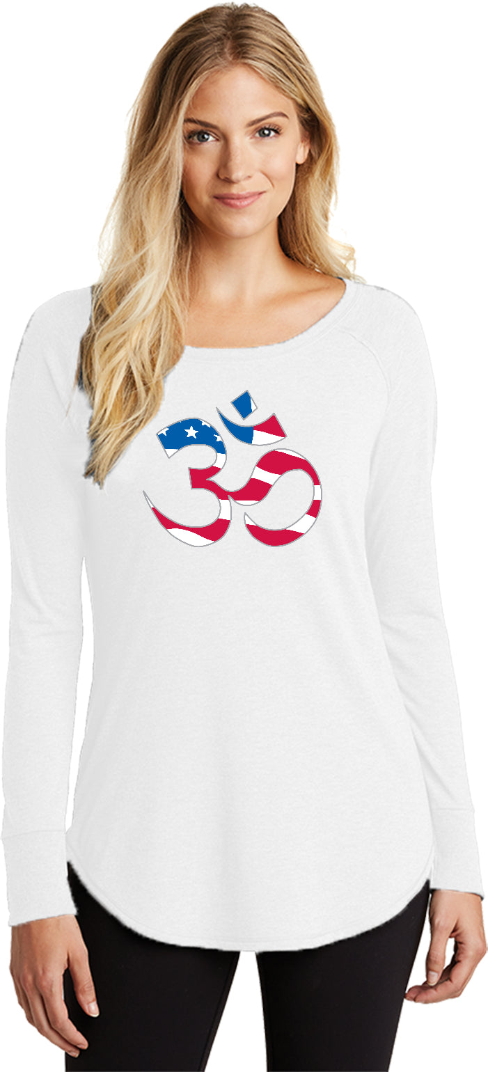 Womens Yoga T-shirt Patriotic Om Long Sleeve Tunic