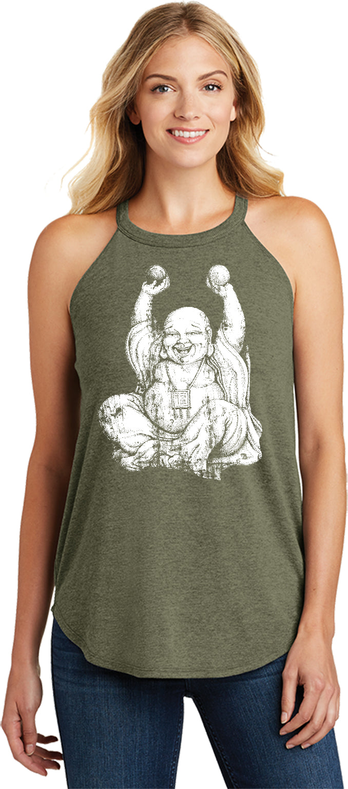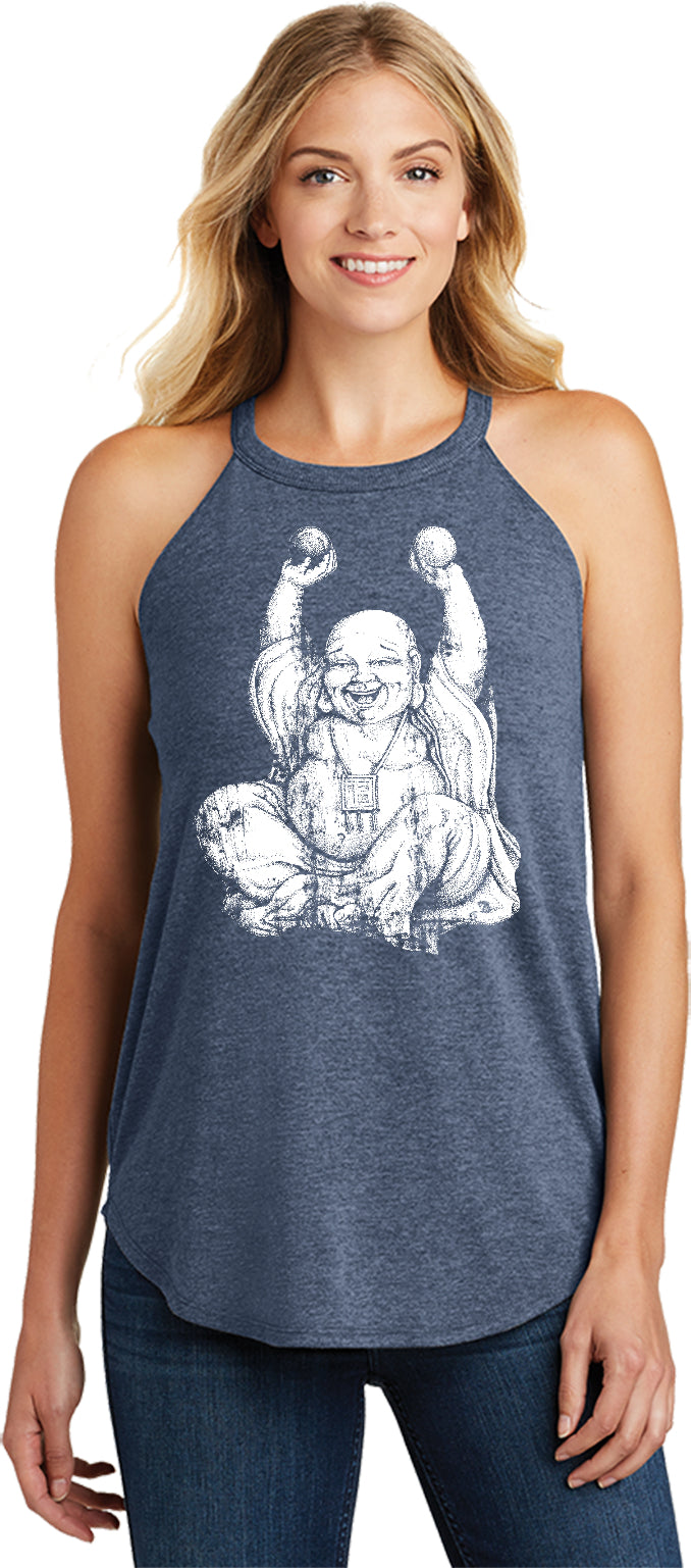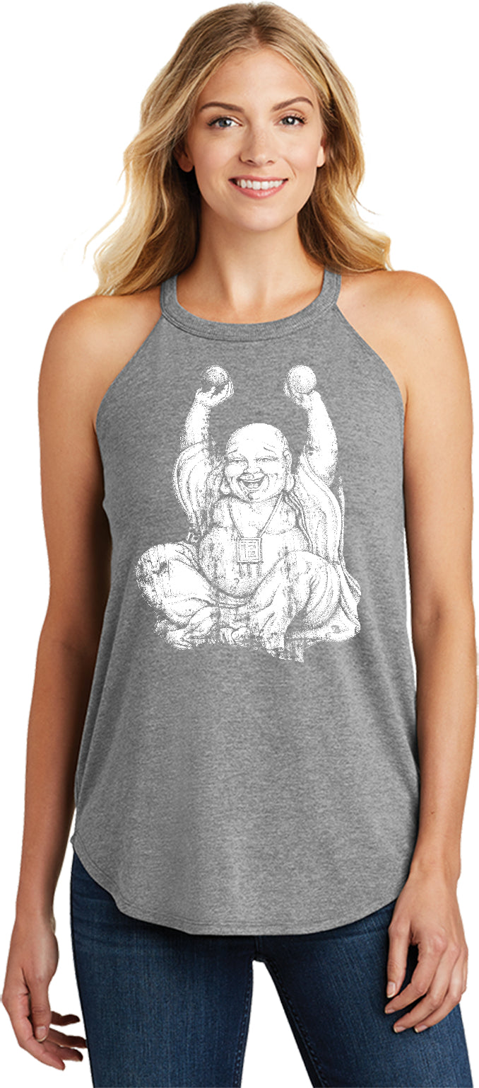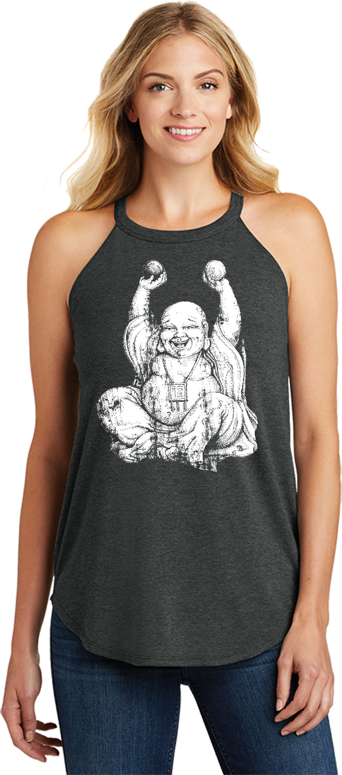 Womens Yoga Tank Top Laughing Buddha Triblend Rocker Tanktop