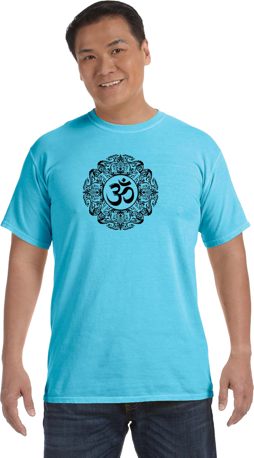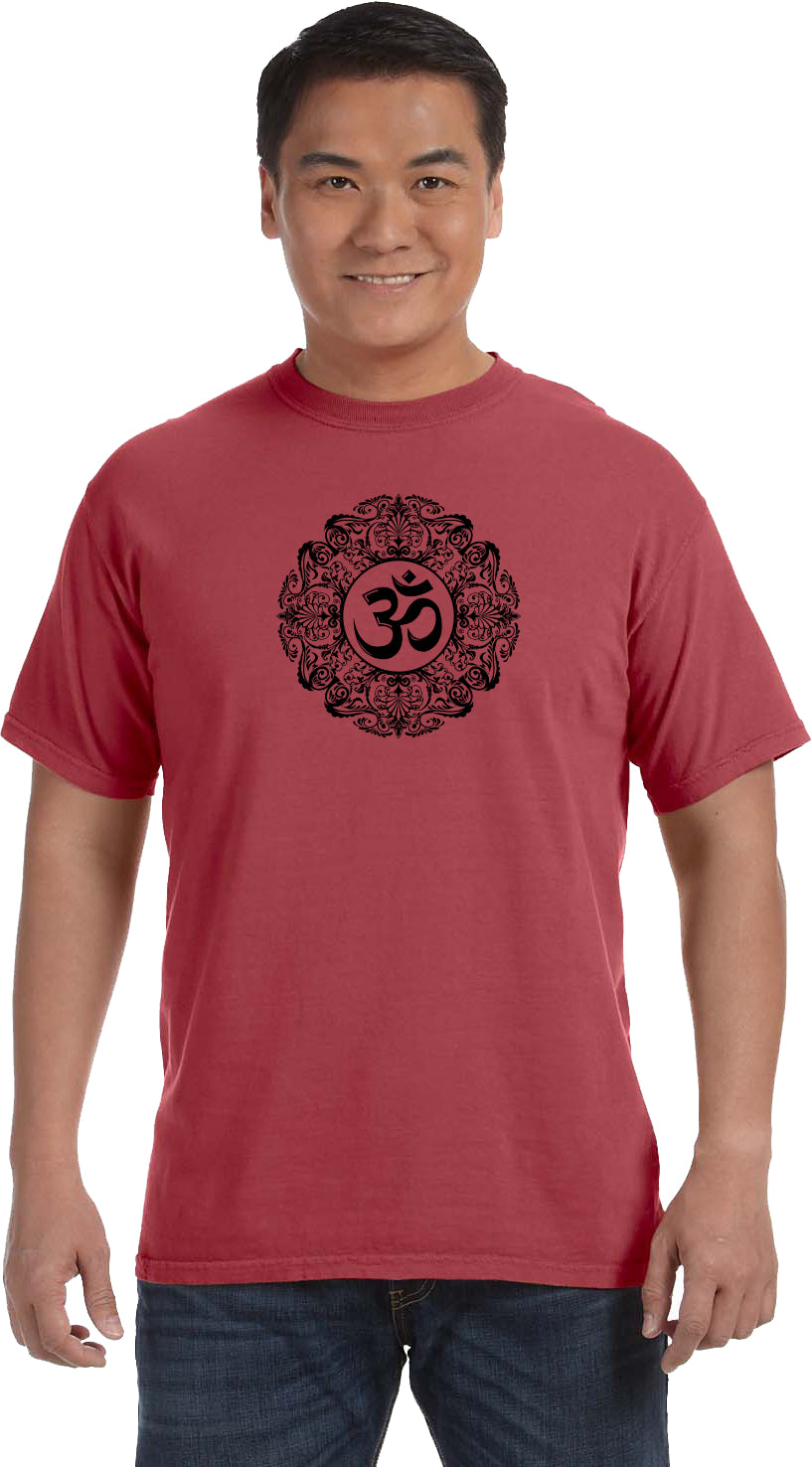 Black Ornate OM Heavyweight Pigment Dye Yoga Tee Shirt