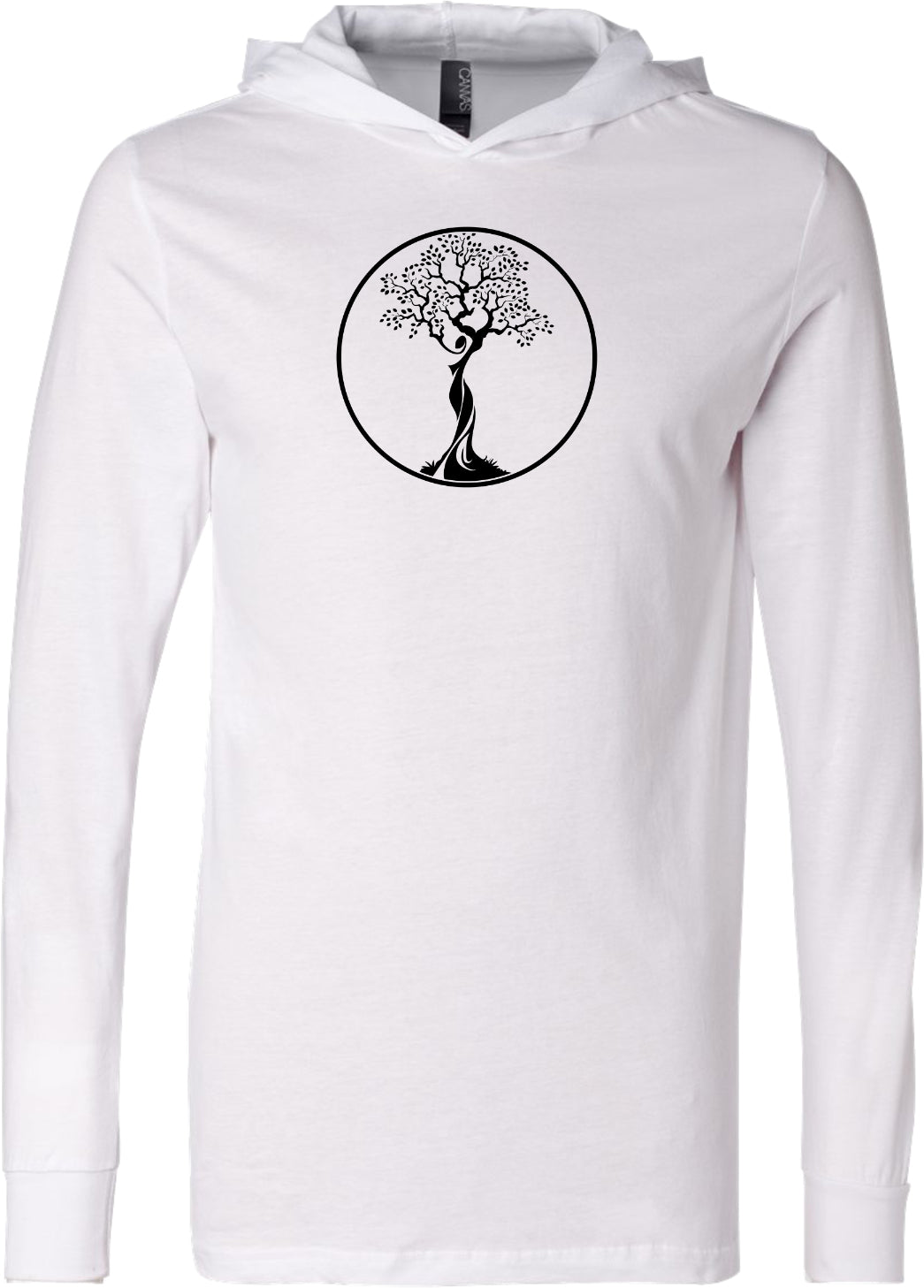 - A men's lightweight hoodie t-shirt featuring the black tree if life circle