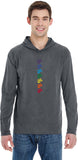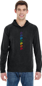 - A men's heavyweight pigment dyed hoodie featuring the 7 sacred aum chakras