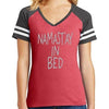 - Distressed (worn looking) printed stripes on the sleeves give this tee a vintage, sporty look