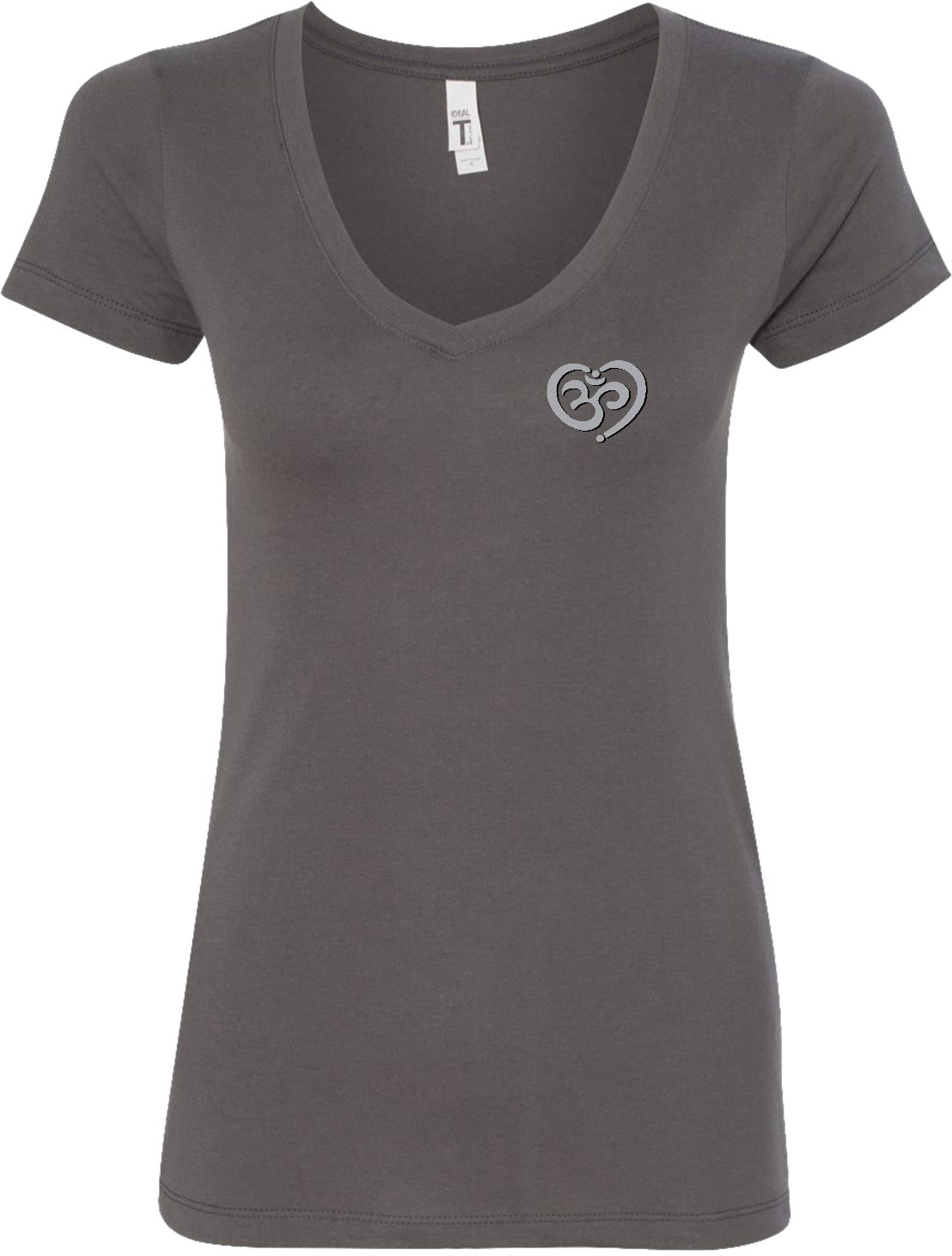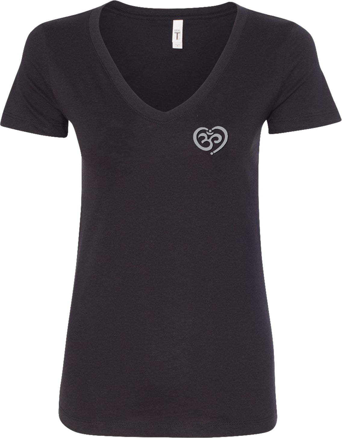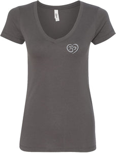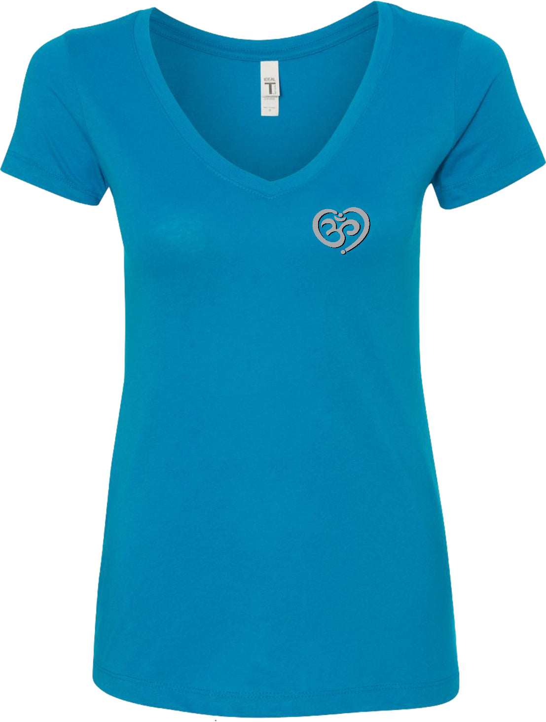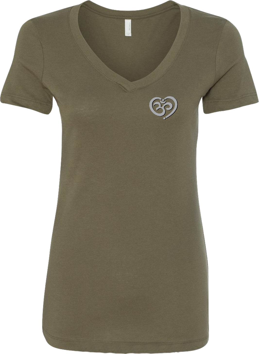- A ladies ideal v-neck t-shirt featuring the om heart pocket print