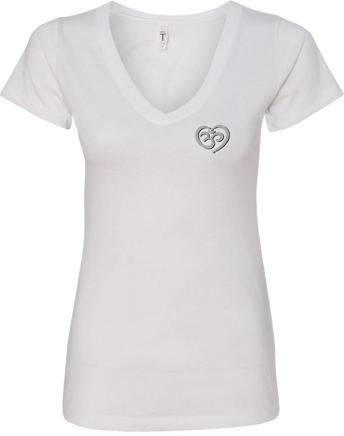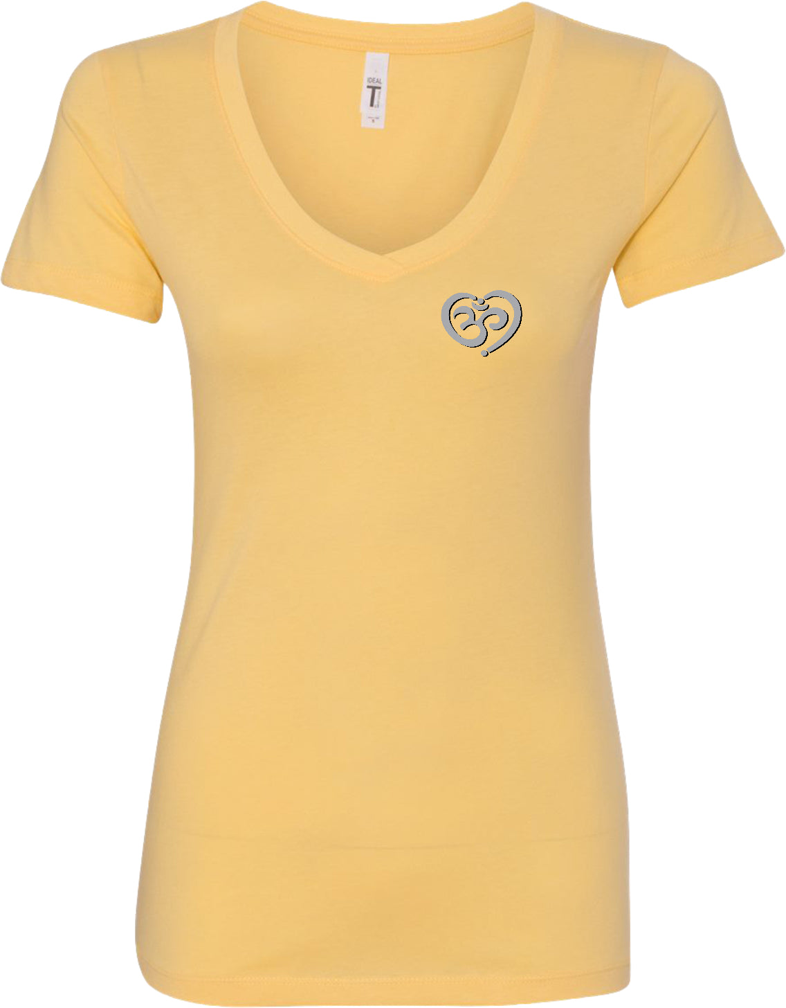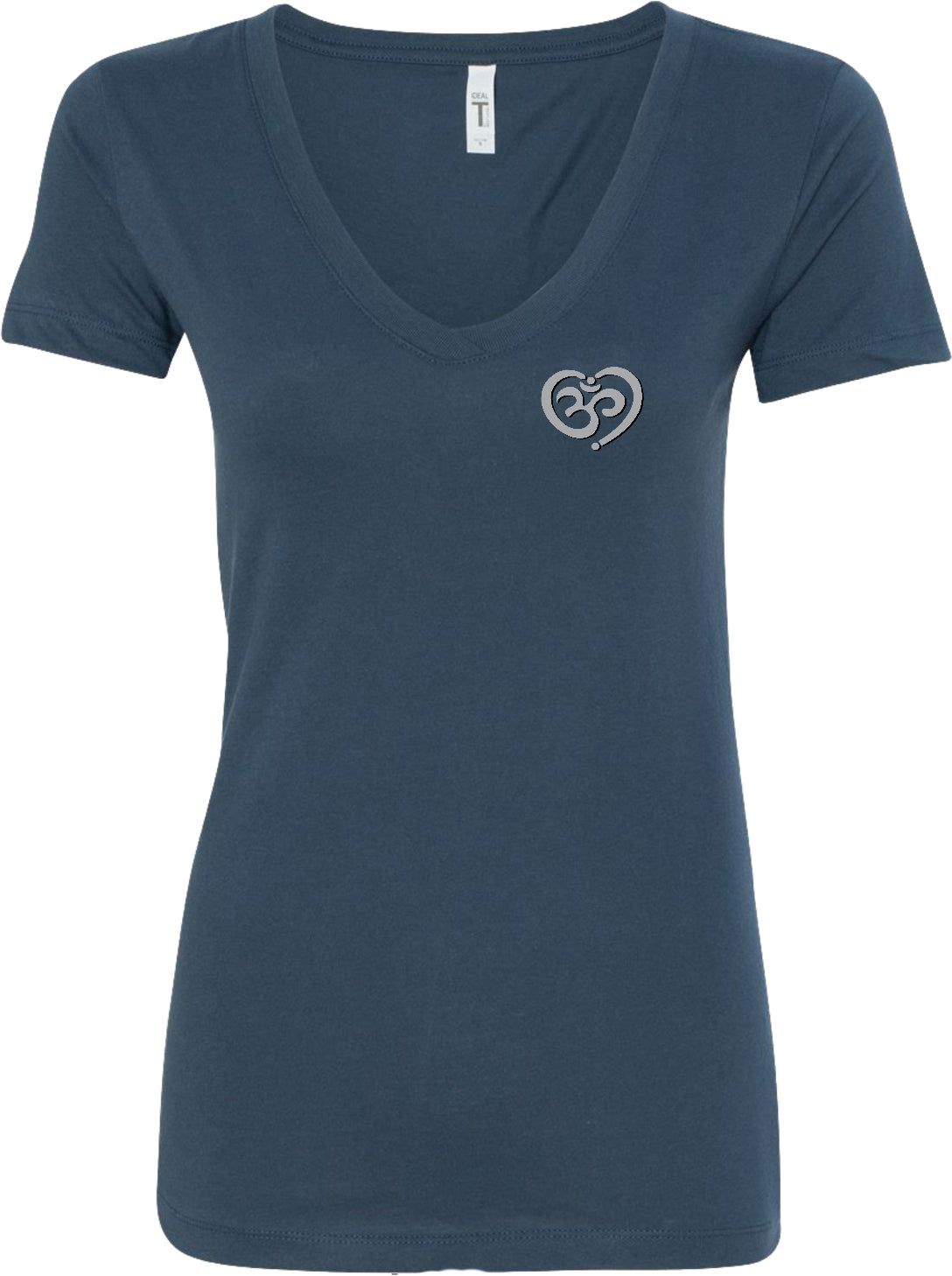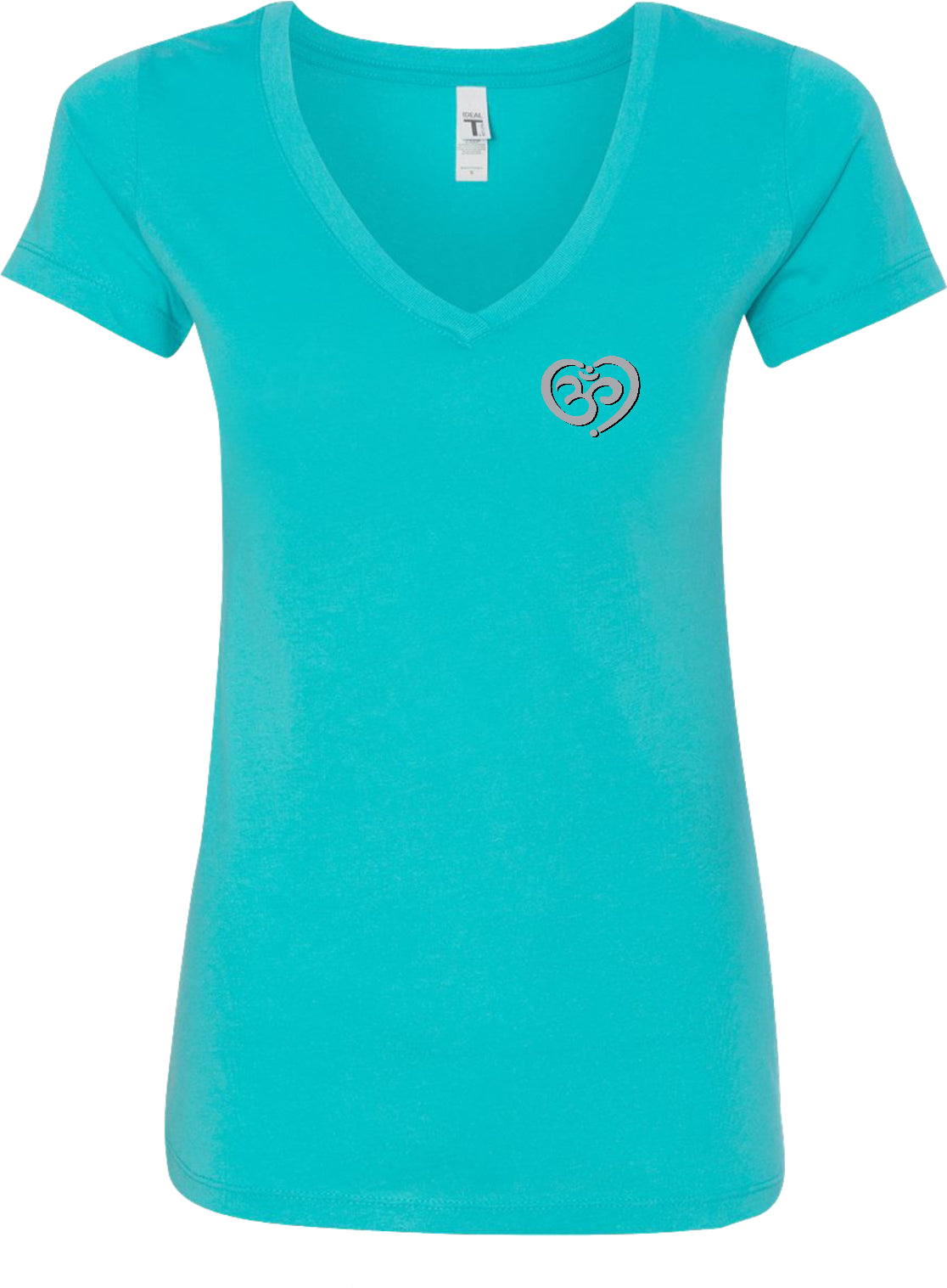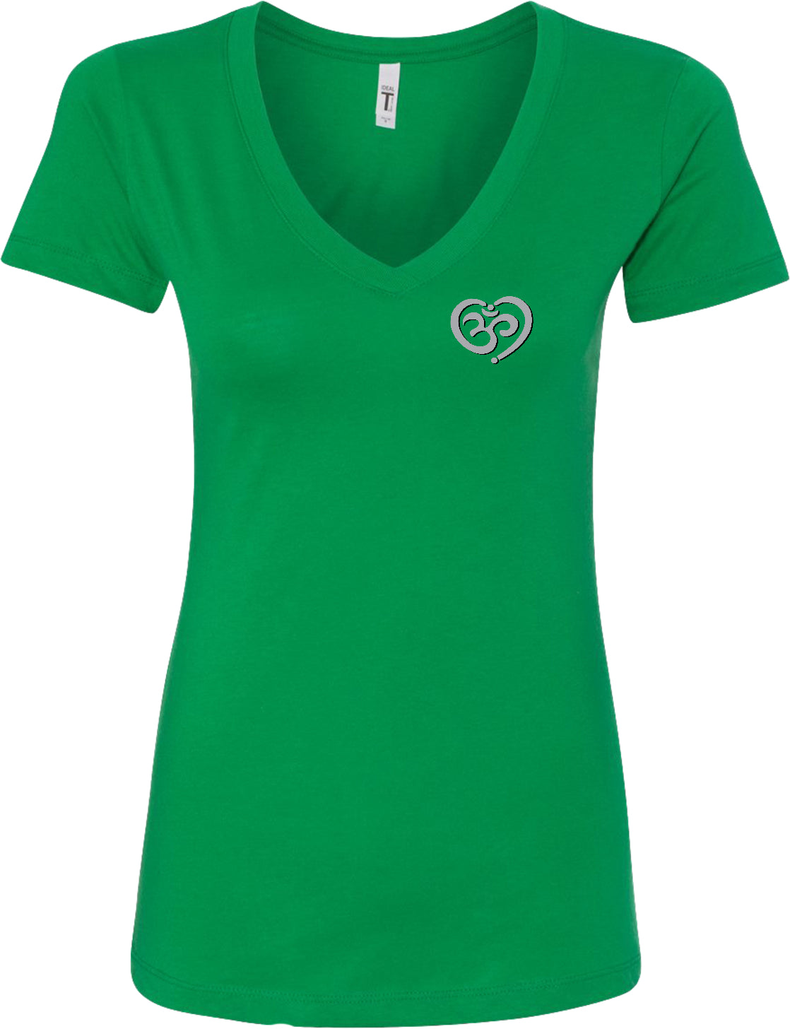 - A ladies ideal v-neck t-shirt featuring the om heart pocket print