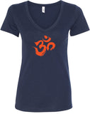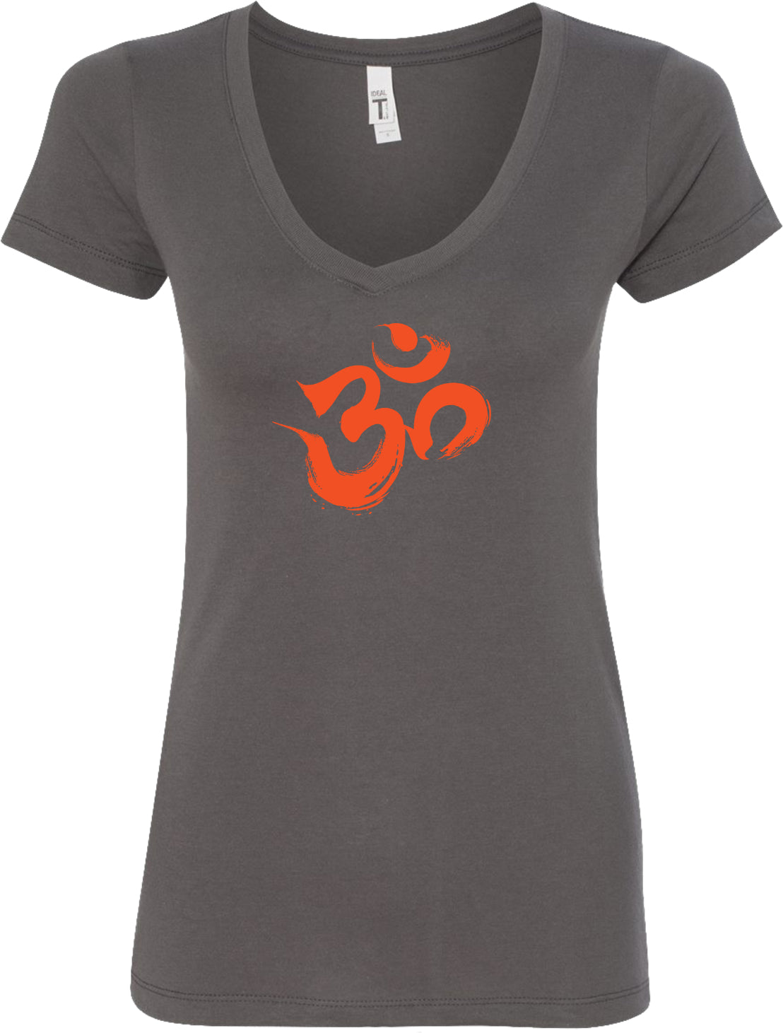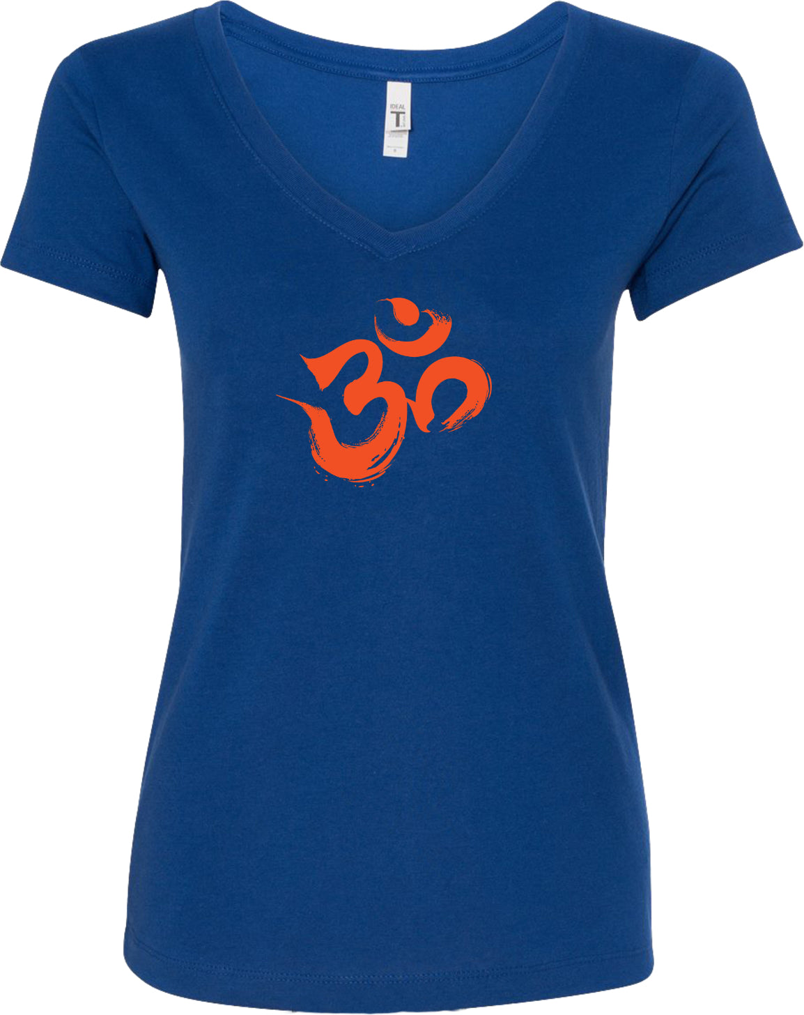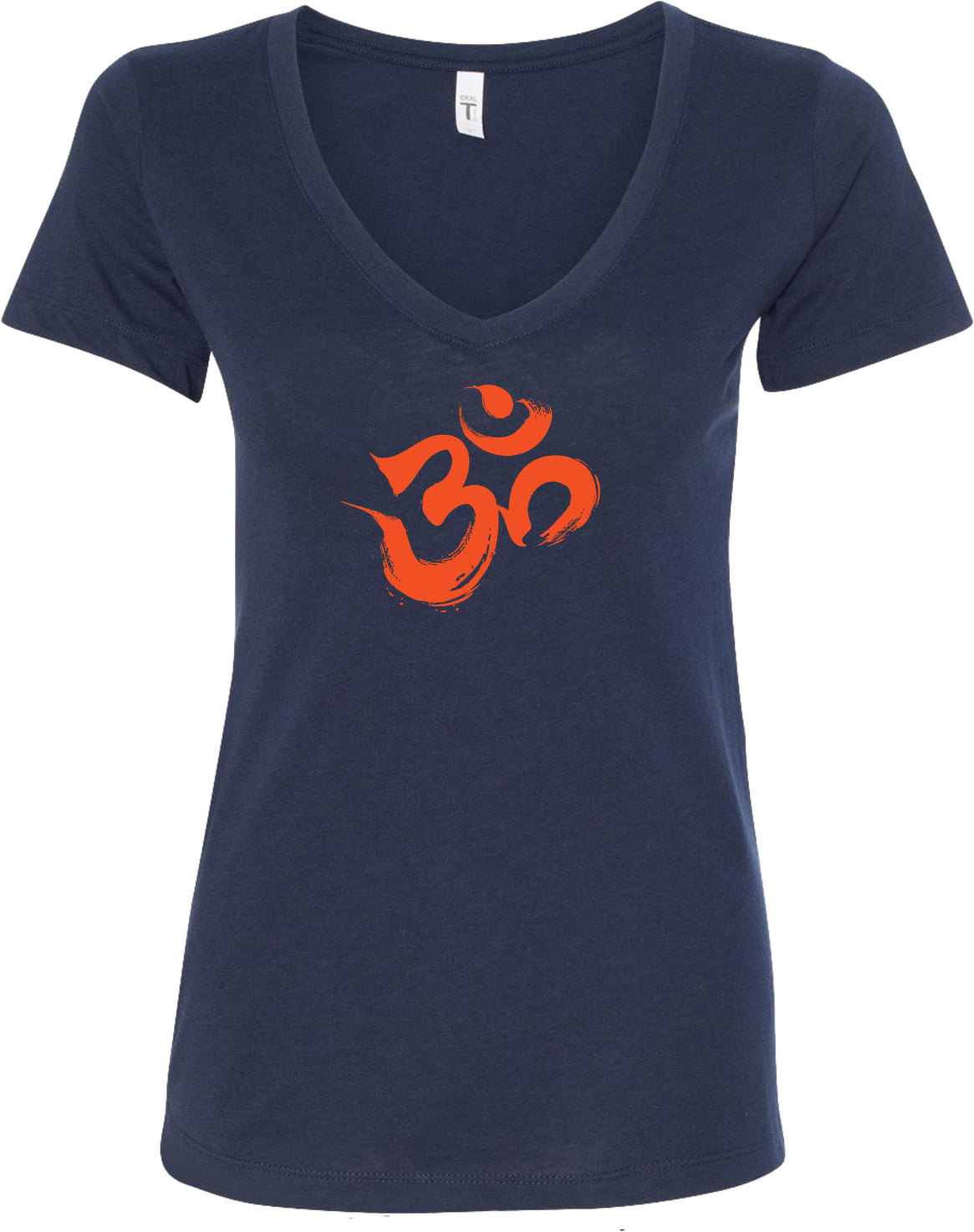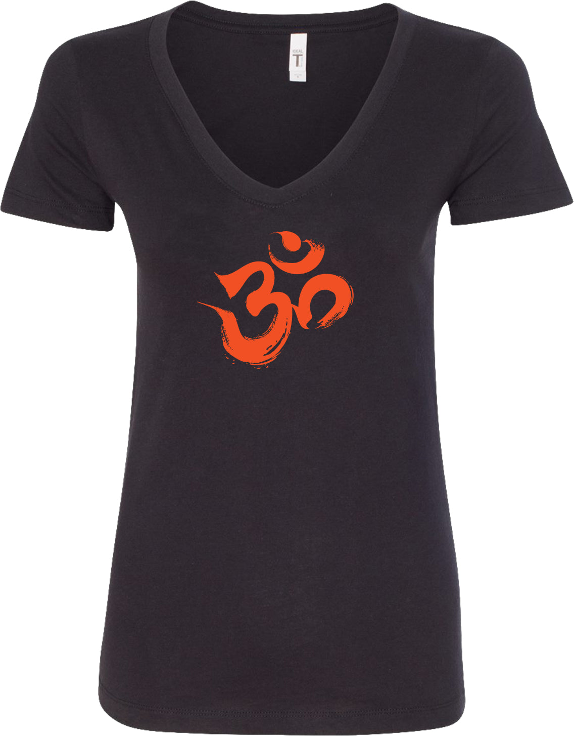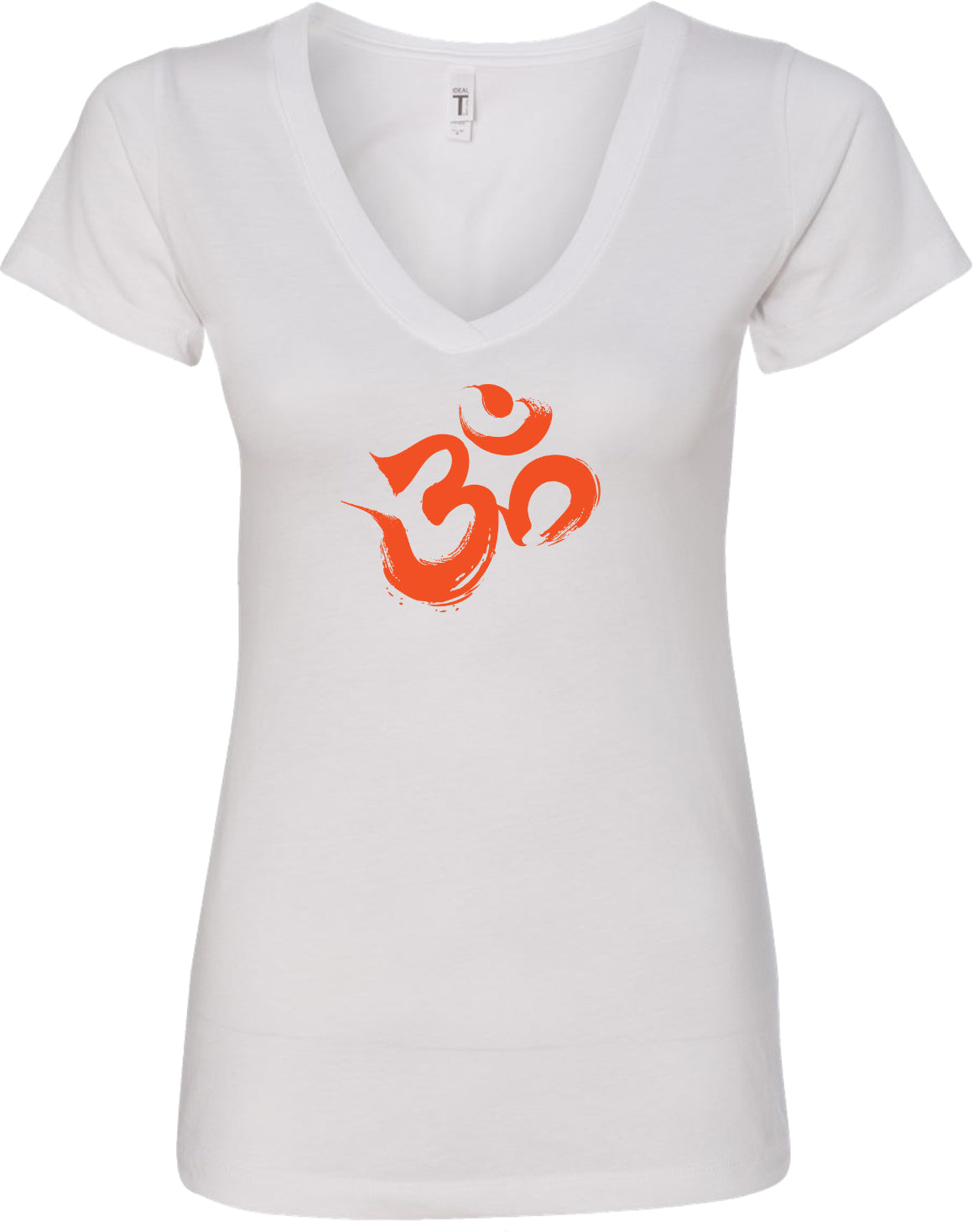 - A ladies ideal v-neck t-shirt featuring the aum symbol in a brushstroke formation