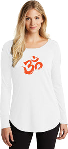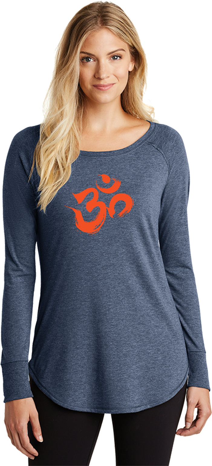 - A ladies tri blend long sleeve tunic t-shirt featuring the aum symbol in a brushstroke formation