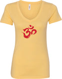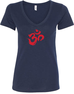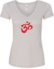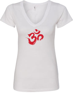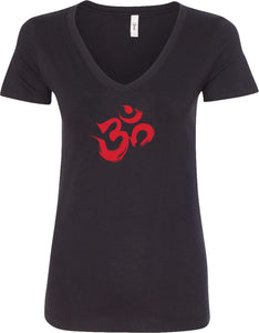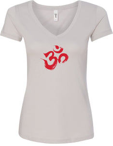 - A ladies ideal v-neck t-shirt featuring the aum symbol in a brushstroke formation