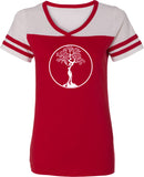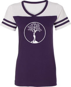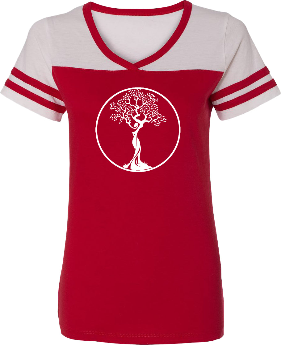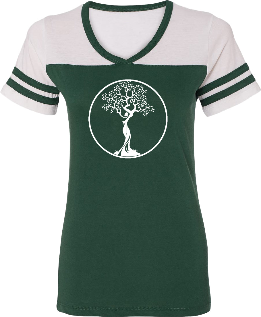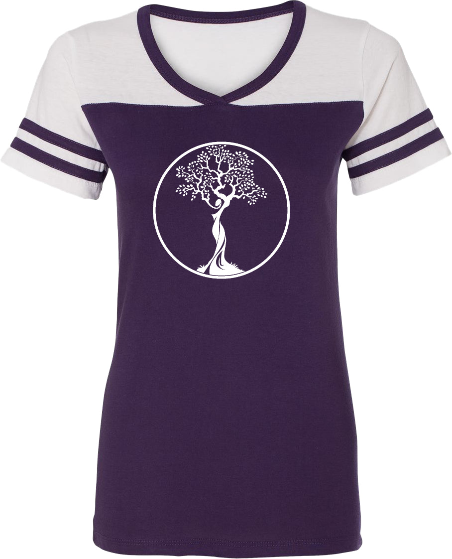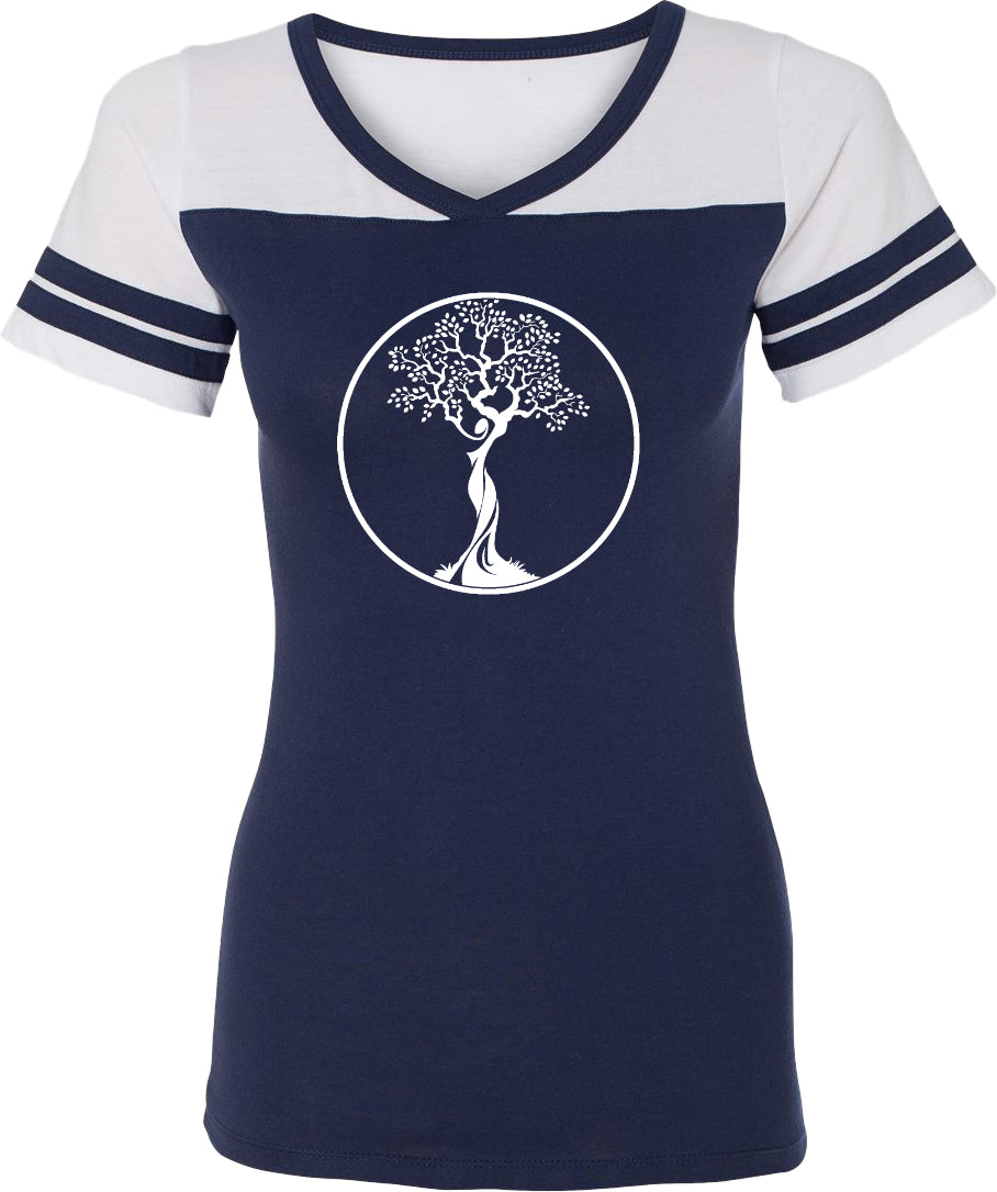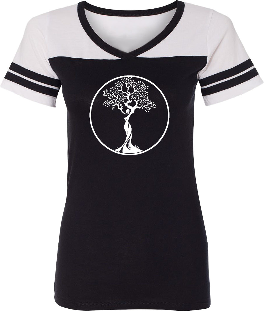 - A ladies powder puff t-shirt featuring the white tree of life circle
