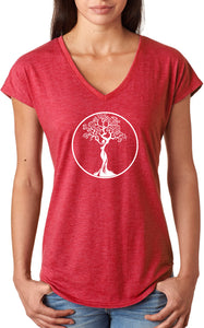 White Tree of Life Circle Triblend V-neck Yoga Tee Shirt