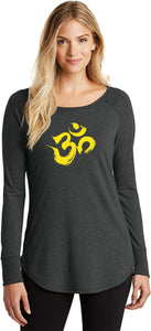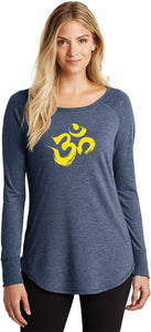 - A ladies tri blend long sleeve tunic t-shirt featuring the aum symbol in a brushstroke formation