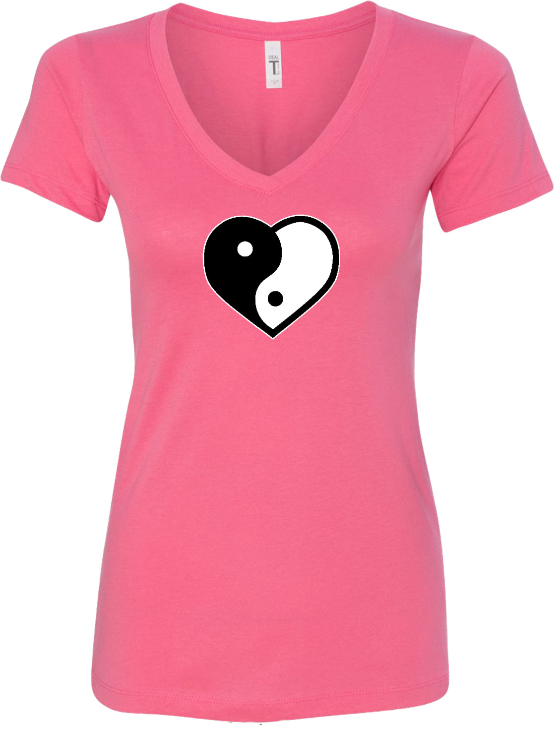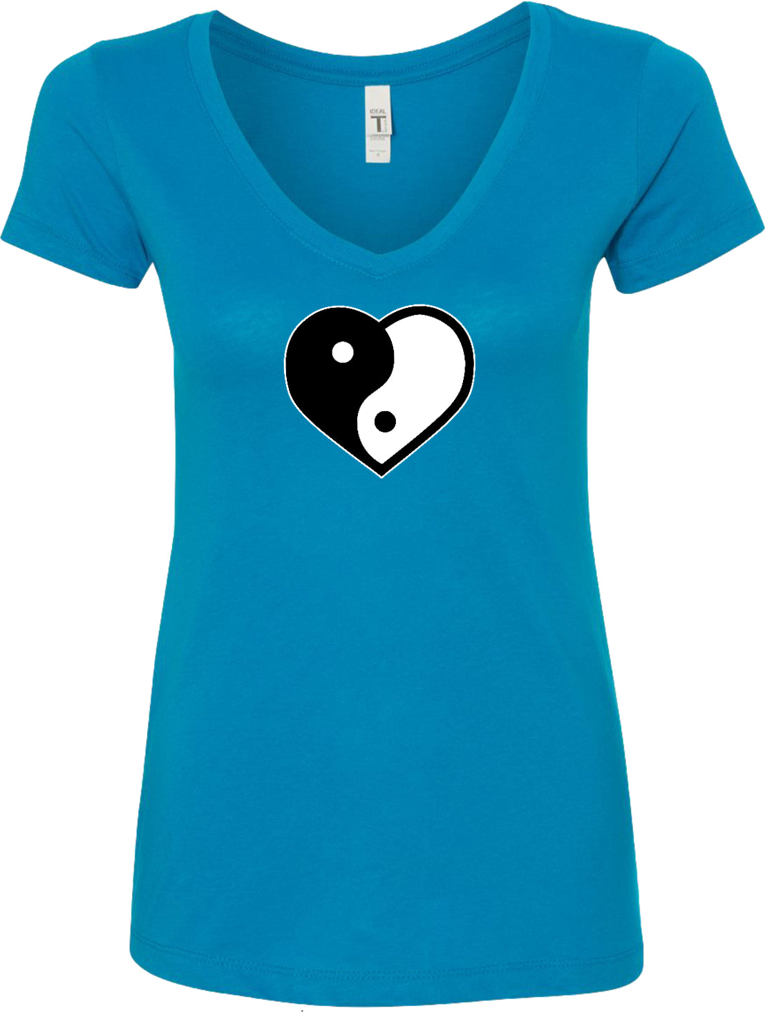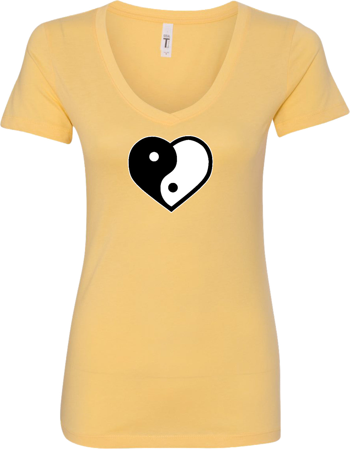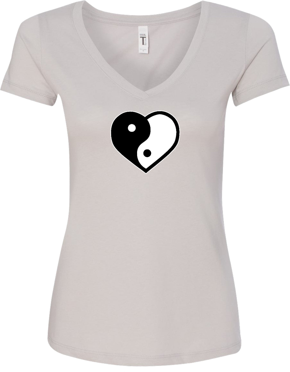 - A ladies ideal v-neck t-shirt featuring the yin yang heart
