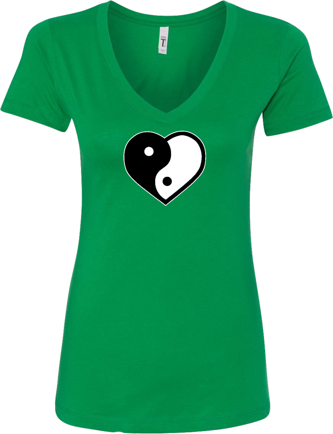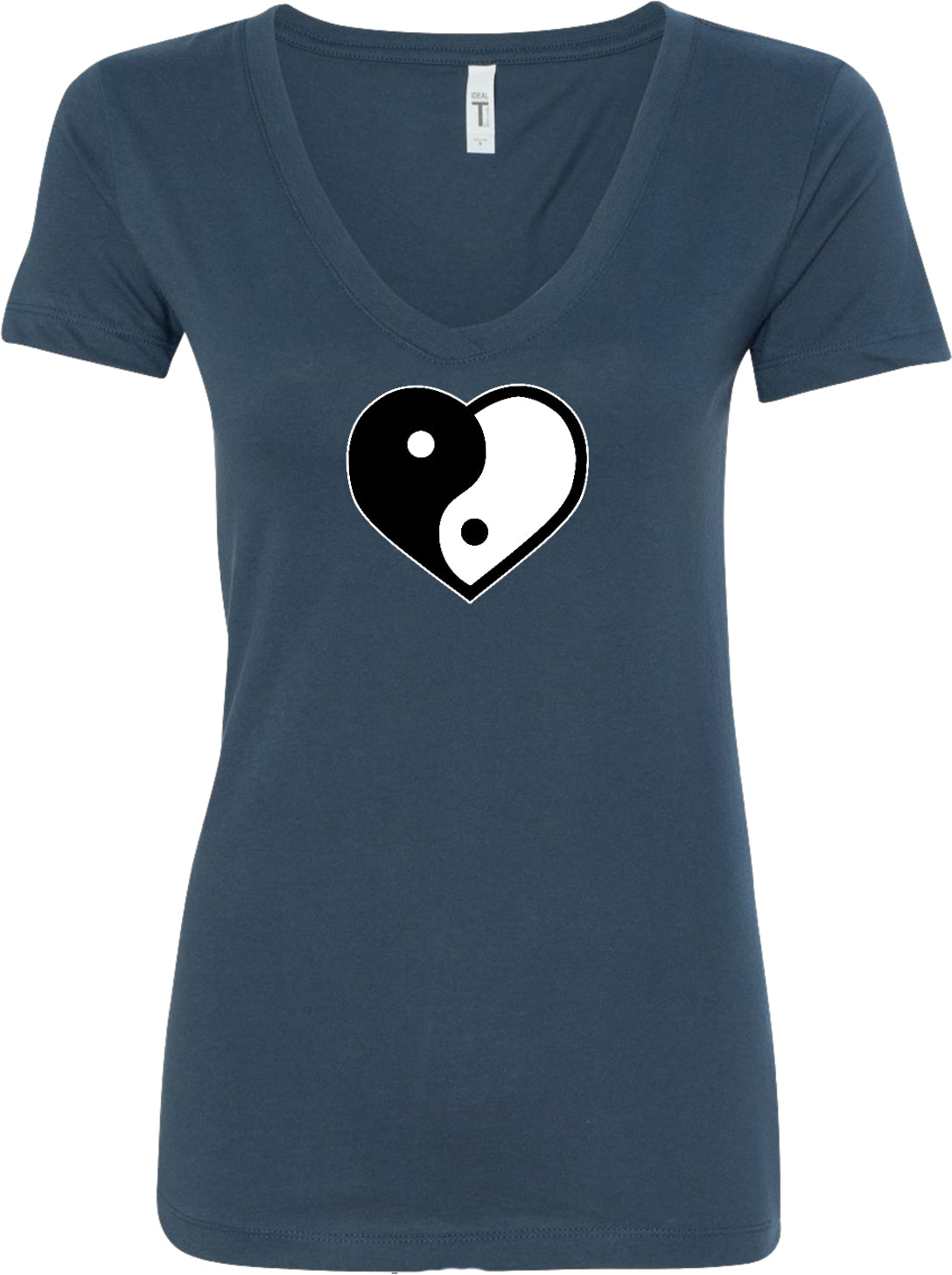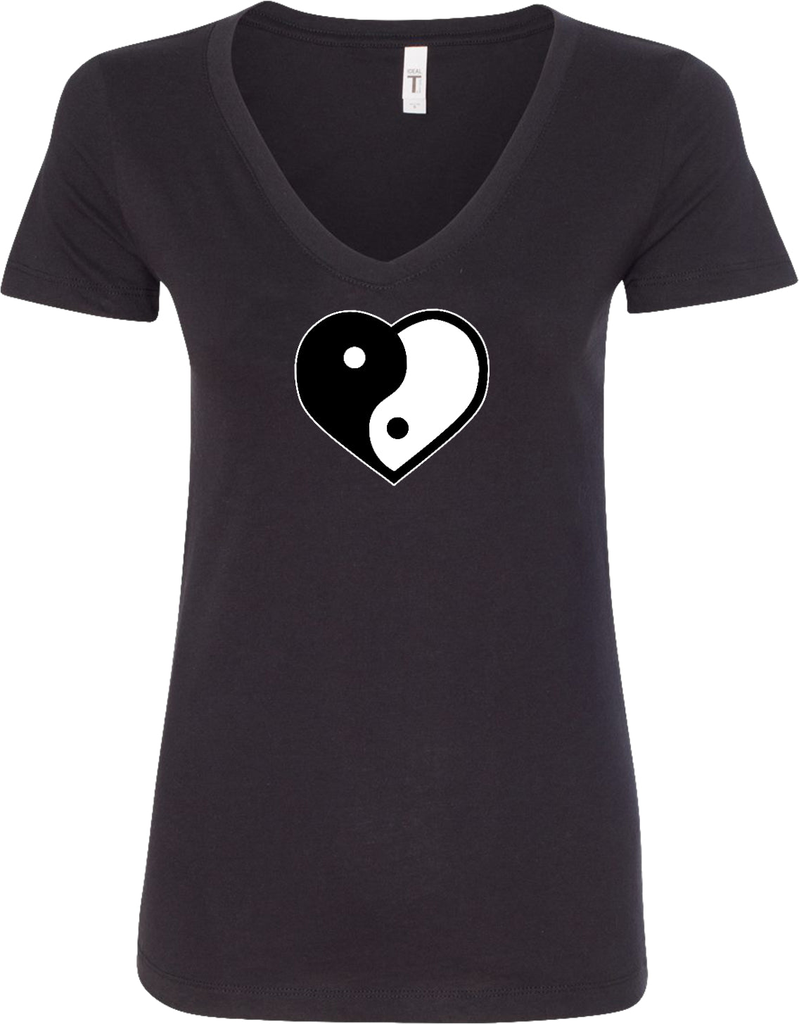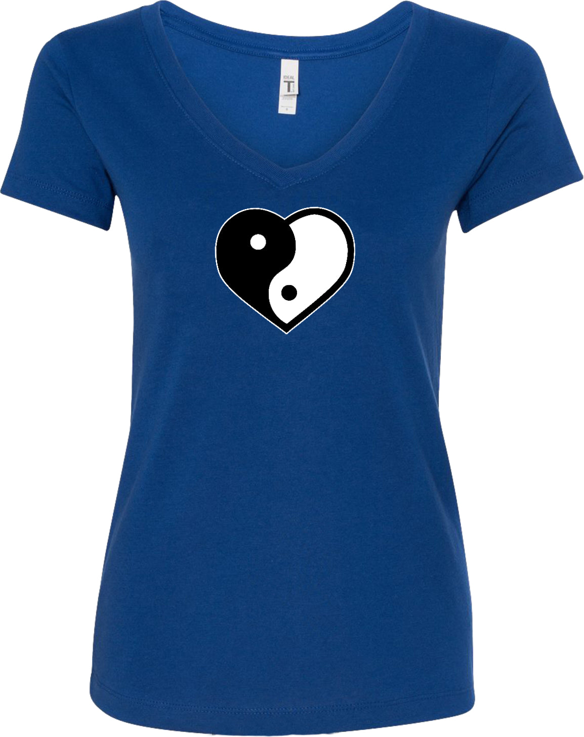 - A ladies ideal v-neck t-shirt featuring the yin yang heart