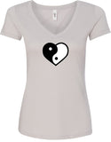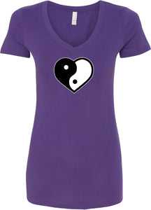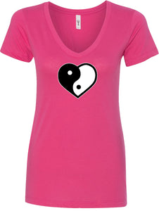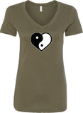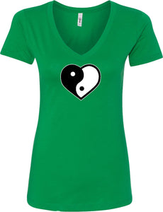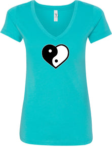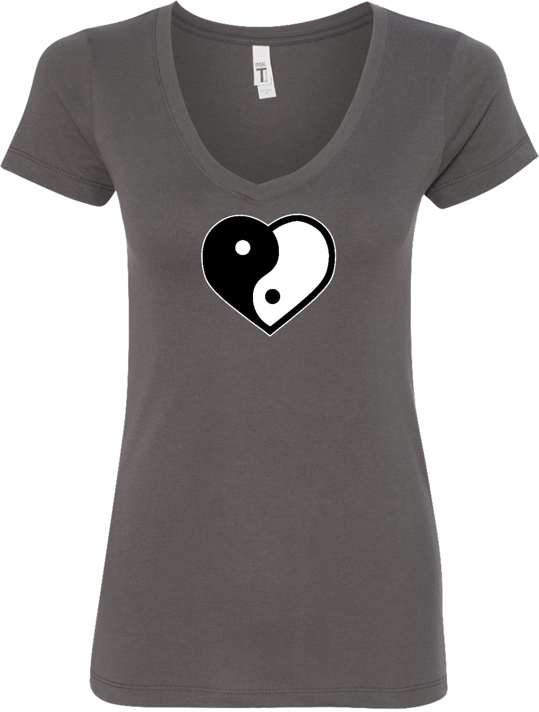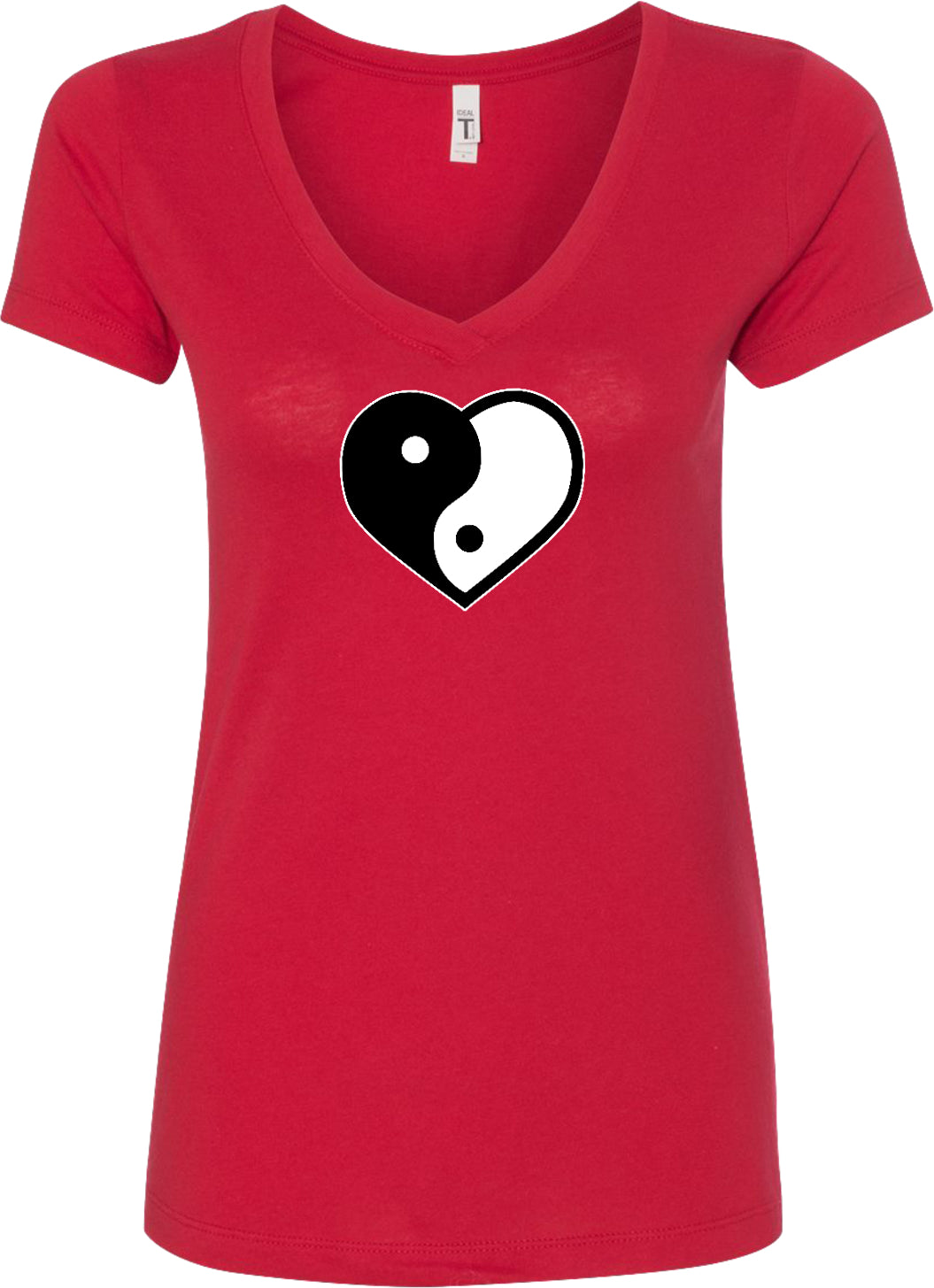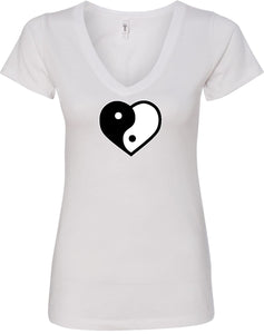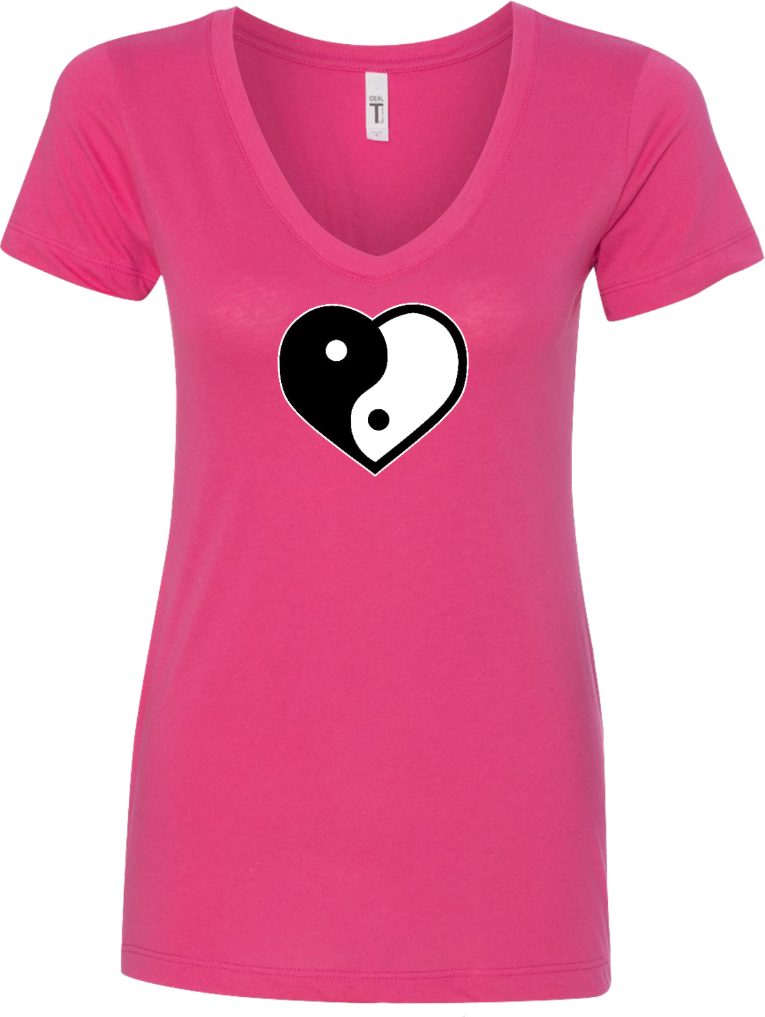 - A ladies ideal v-neck t-shirt featuring the yin yang heart