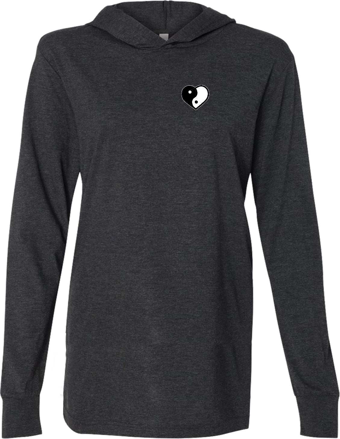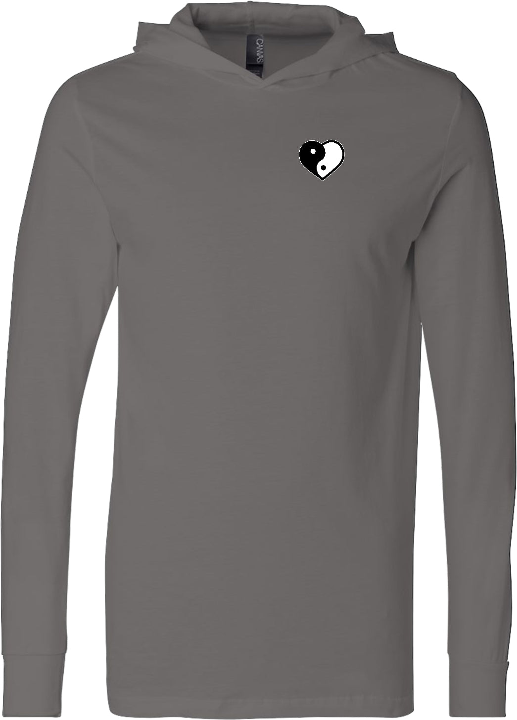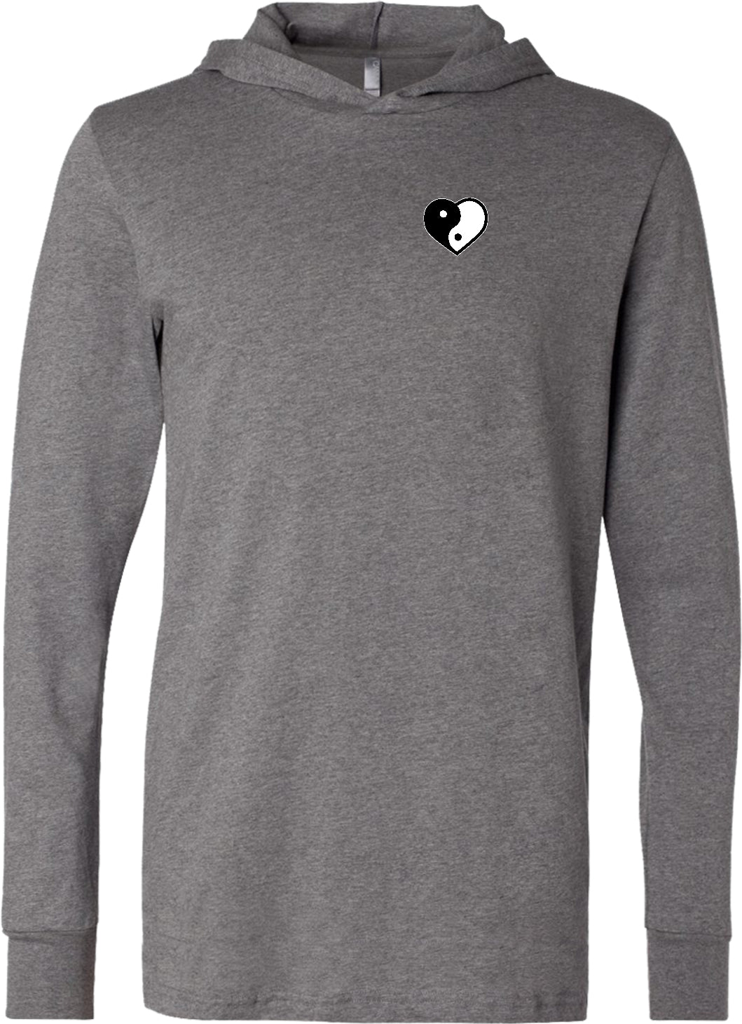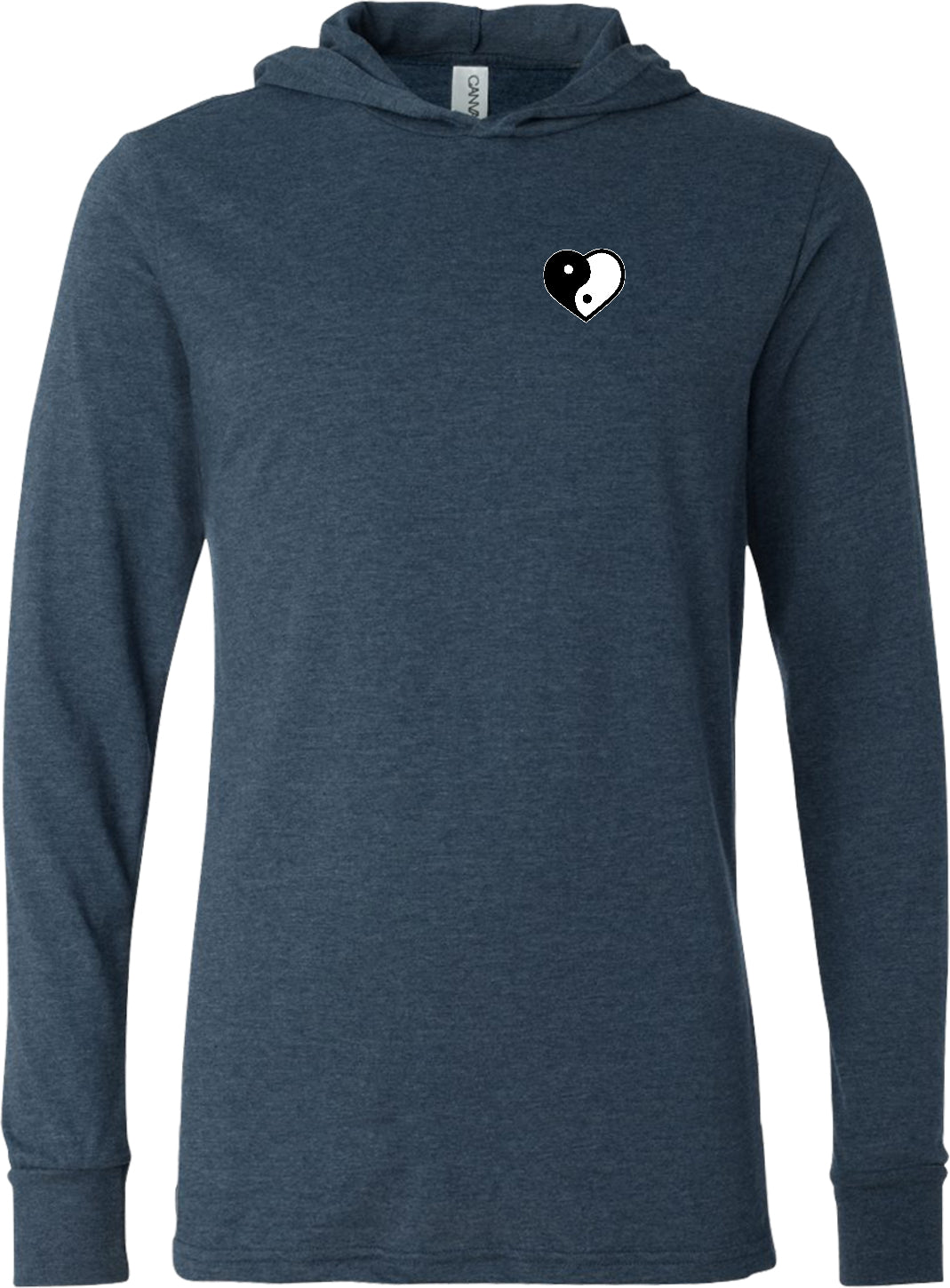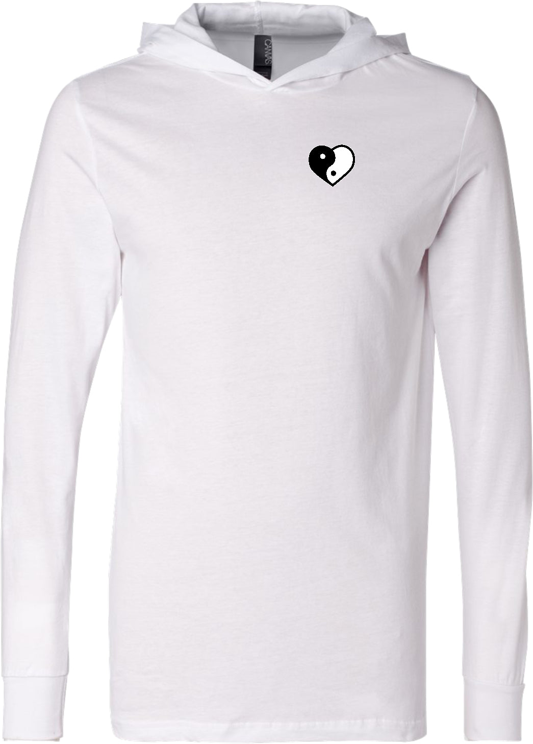 - A men's lightweight hoodie t-shirt featuring the yin yang heart pocket print