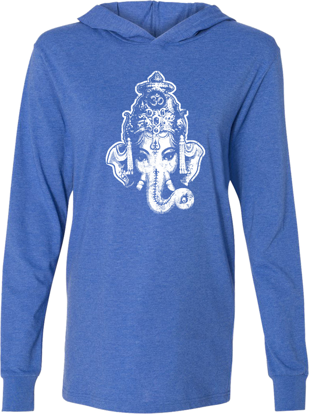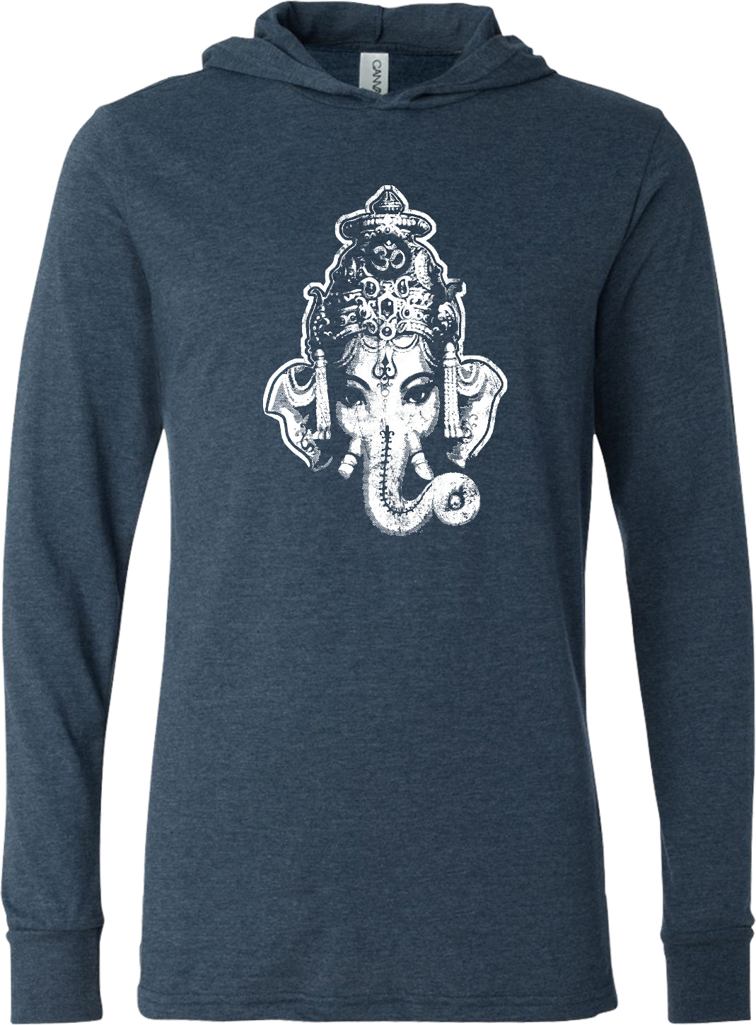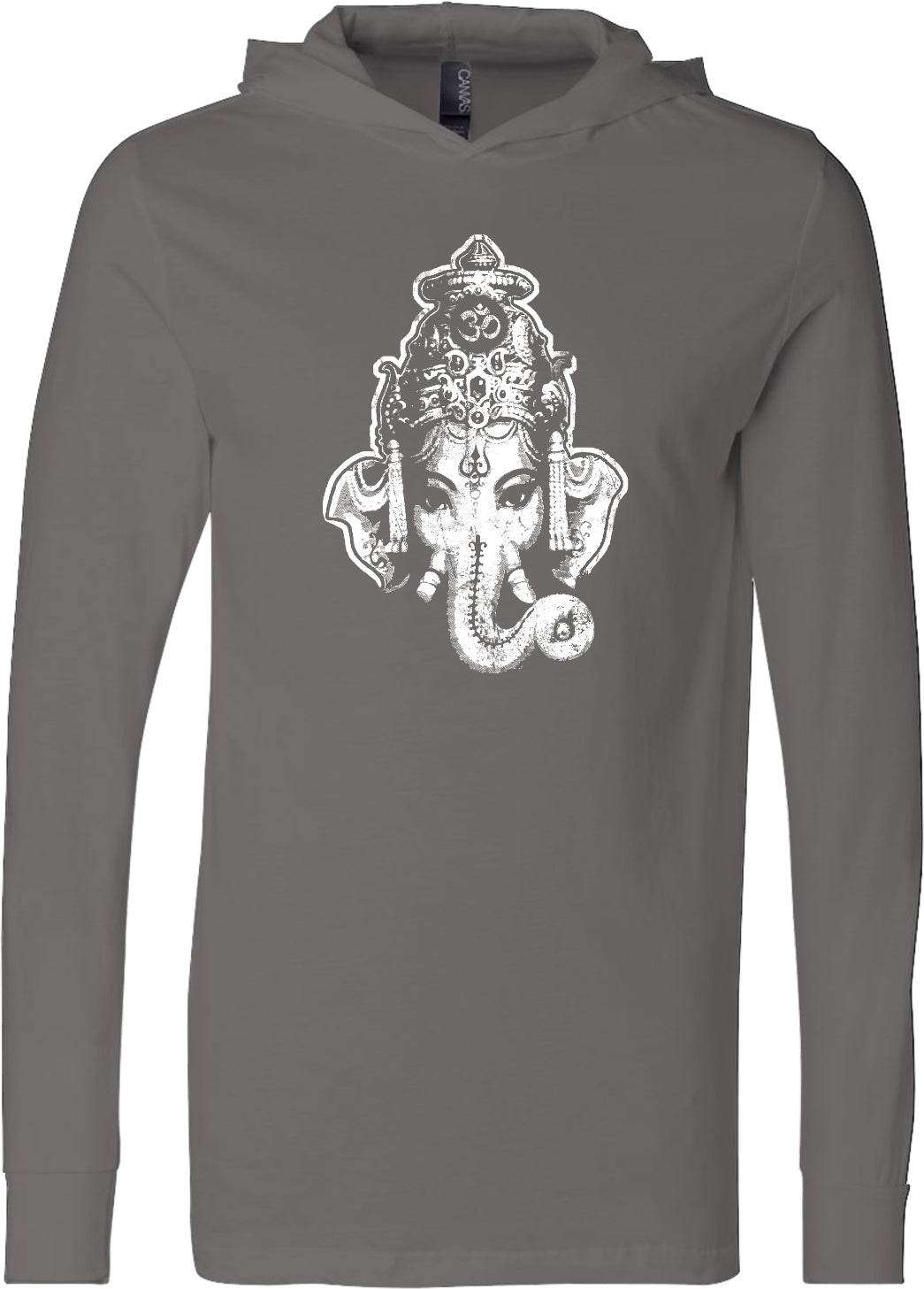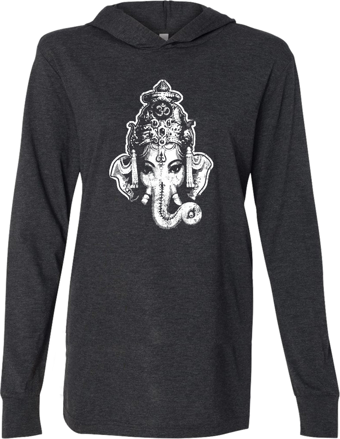 - A men's lightweight hoodie featuring a distressed image of Ganesha